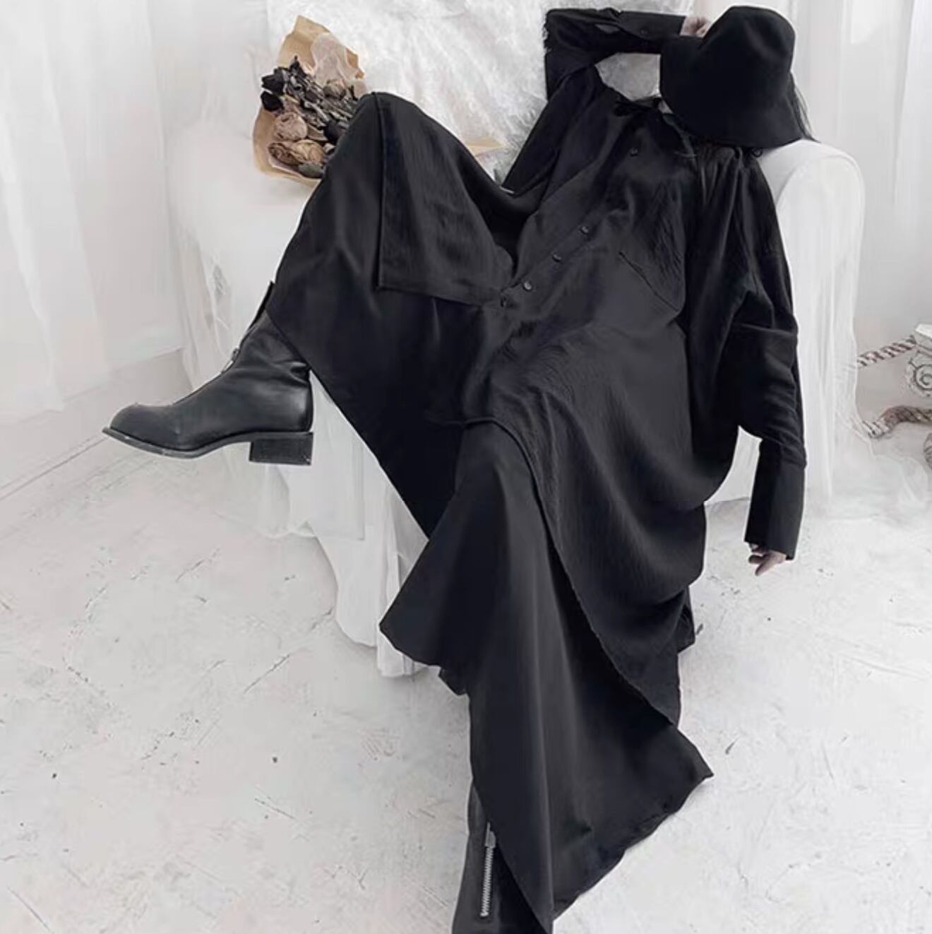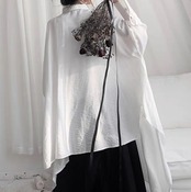 アシンメトリーロングシャツ。大人可愛いモード系スタイルで、圧倒的な存在感を。