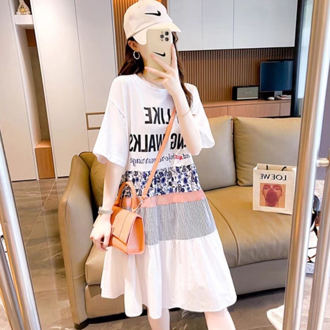 レディース ワンピース フレア 膝下 半袖 ラウンドネック Aライン フェミニン ストリート ウエストマーク ハイウエスト ヴィンテージ 切り替えデザイン ドッキング かわいい 大人可愛い カジュアル おしゃれ ガーリー ルーズ 個性的 カレッジ風 学生風 アメリカン アクティブ プリント 夏 ママ マタニティ お出かけ リゾート 旅行 ビーチ 休日 バカンス 普段使い 着回し トレンド 流行 インスタ映え M L XL 2XL 小さいサイズ 大きいサイズ ゆったり ゆる 白 ホワイト グレー ブルー