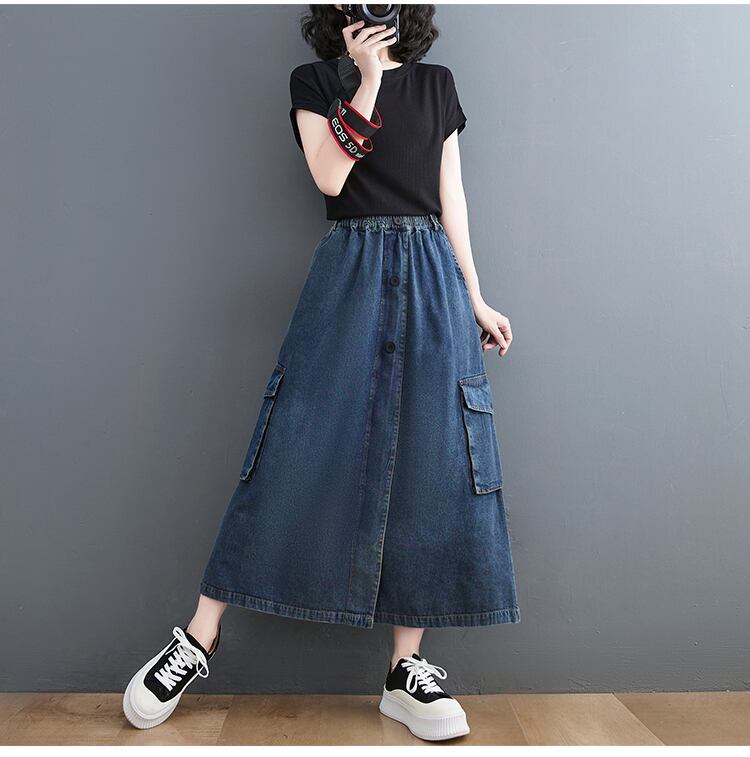 このデニムスカートは、フレアなシルエットとロング丈が女性らしさを引き立てる一枚。ポケットも付いているので実用性も抜群です。カジュアルにもきれいめコーデにもマッチするので、着回し力も抜群です。デートや女子会、休日のお出かけにもピッタリです。ブルーデニムのシンプルなデザインは大人可愛い雰囲気を演出し、一枚で主役になれる存在感を放ちます。個性的でエレガントなスタイルを求める方にもおすすめ。このデニムスカートで、こなれ感たっぷりのおしゃれコーデを楽しんでください。