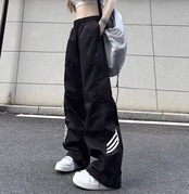 レディース パンツ ボトムス ストレートパンツ フルレングス ストレート ストリート ウエストゴム シンプル カジュアル かっこいい ラフ メンズライク ボーイッシュ スポーティー ルーズ ベーシック アクティブ ワイルド 無地 春 夏 秋 ロングシーズン 男女兼用 ユニセックス 10代 20代 30代 40代 OL 学生 部活 アウトドア キャンプ イベント リゾート 海 プール ビーチ ジム 公園 休日 バカンス ツーリング 楽ちん 脚長 プチプラ 普段使い 定番 S M L 黒 ブラック モノトーン