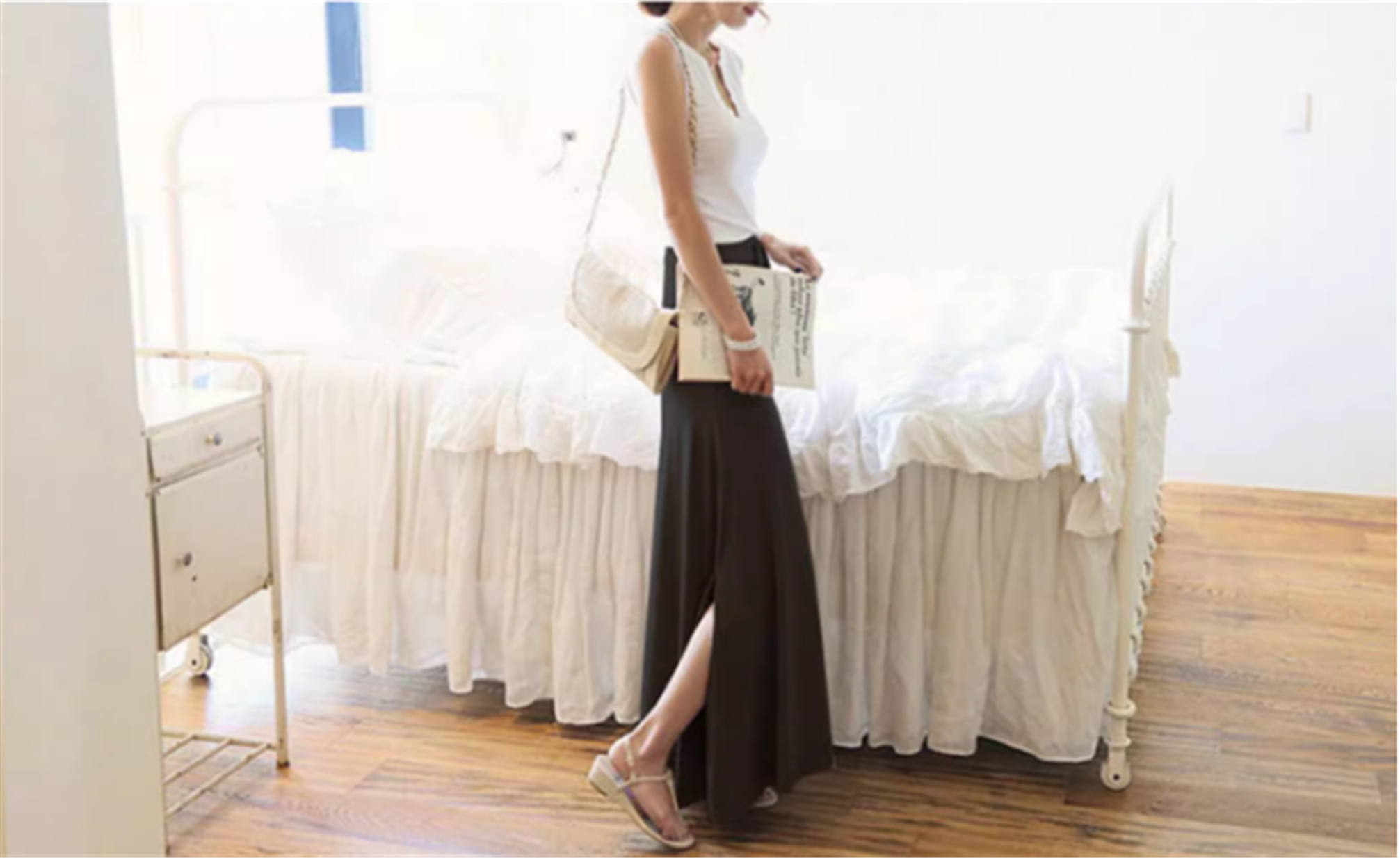 レディース スカート ボトムス ロング スリット ウエストゴム Aライン 大人可愛い きれいめ シンプル 上品 おしゃれ かっこいい クール 主役級 存在感 無地 夏 10代 20代 30代 40代 ティーン お姉さん 学生 学校 通学 デート お出かけ 韓国 オルチャン コーデ 美脚 脚長 着回し モテ 清楚 トレンド 流行 インスタ映え 定番 S M L XL 2XL 黒 ブラック グレー