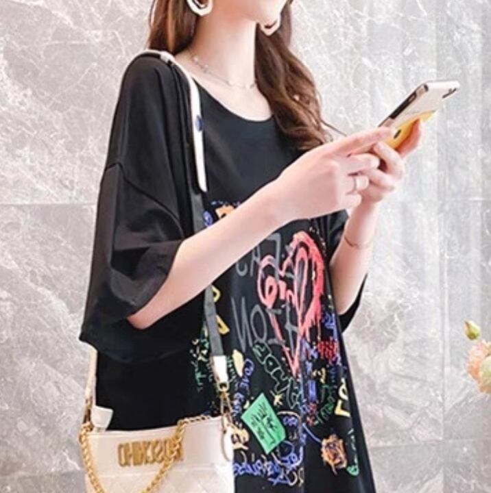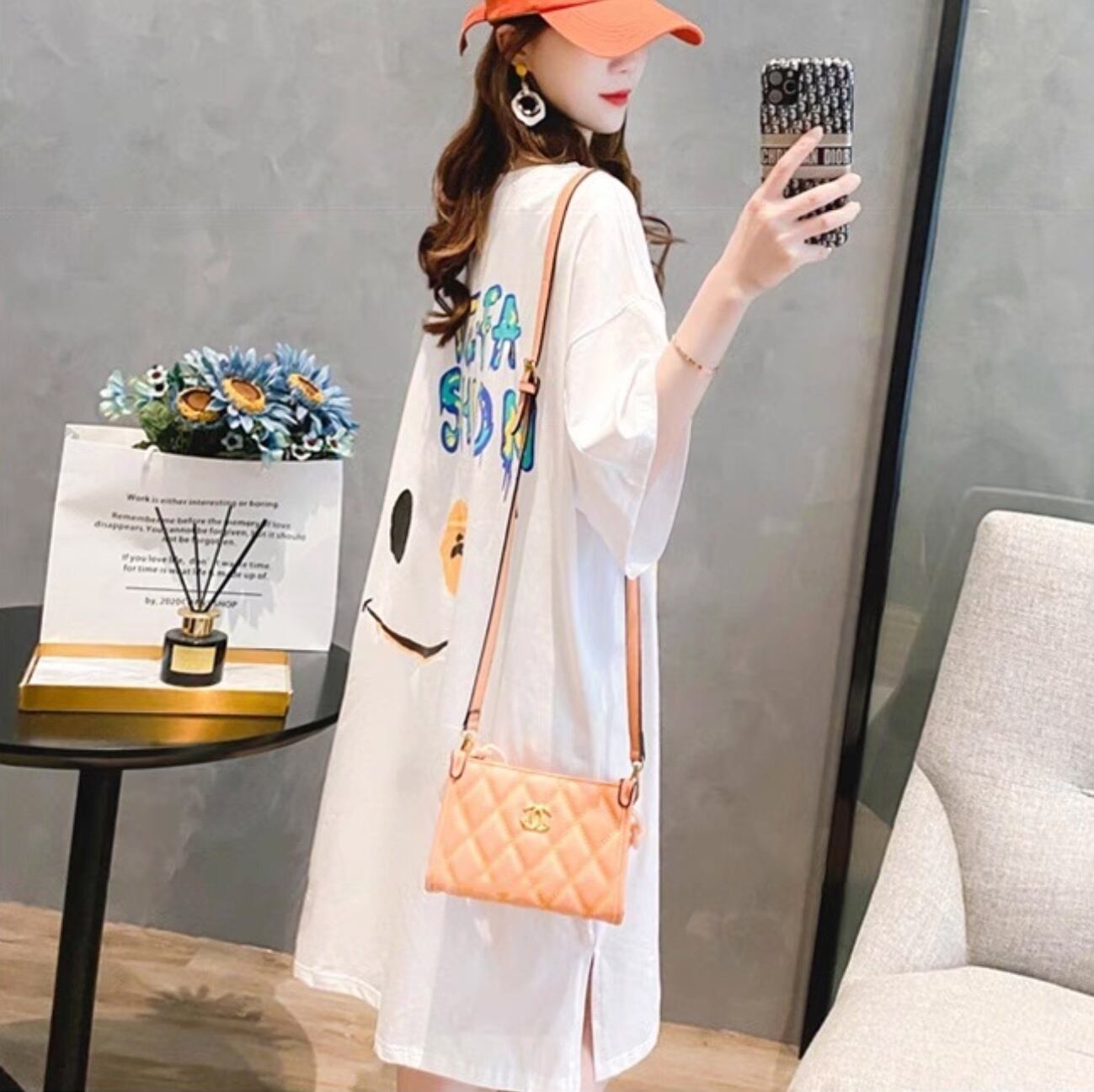 膝丈&半袖のオーバーサイズで、こなれ感たっぷりのカジュアルコーデ。