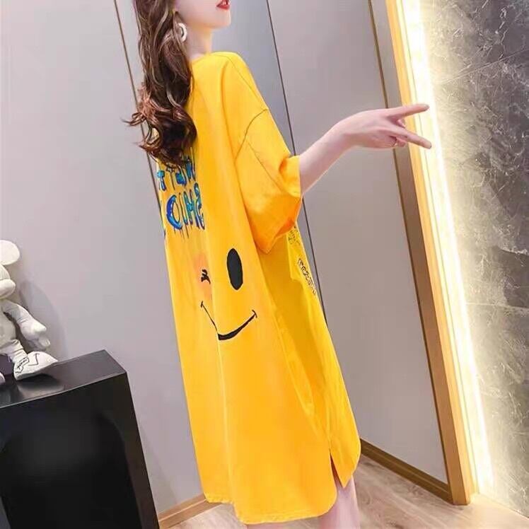 レディース ワンピース 膝丈 半袖 ラウンドネック オーバーサイズ ストリート サイドスリット ヴィンテージ アメカジ カジュアル おしゃれ こなれ感 ラフ ガーリー ルーズ 抜け感 ラブリー キュート カレッジ風 学生風 アメリカン プリント バックプリント 夏 10代 20代 ティーン 学生 学校 お出かけ 旅行 休日 ライブ 重ね着 体型カバー 普段使い 着回し トレンド 流行 インスタ映え M L XL 2XL 大きいサイズ ビッグ ゆったり ゆる 白 ホワイト 黒 ブラック 黄色 イエロー