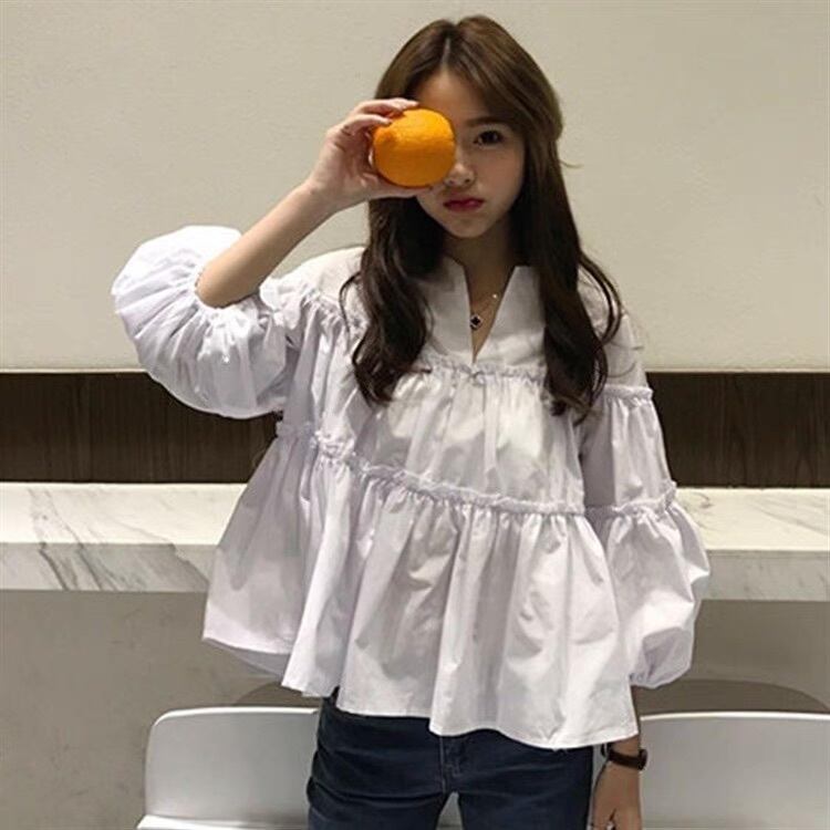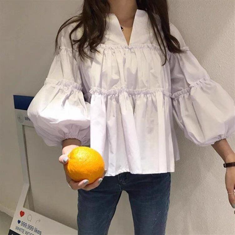 フリルとティアードで魅せる、フェミニンブラウス 。