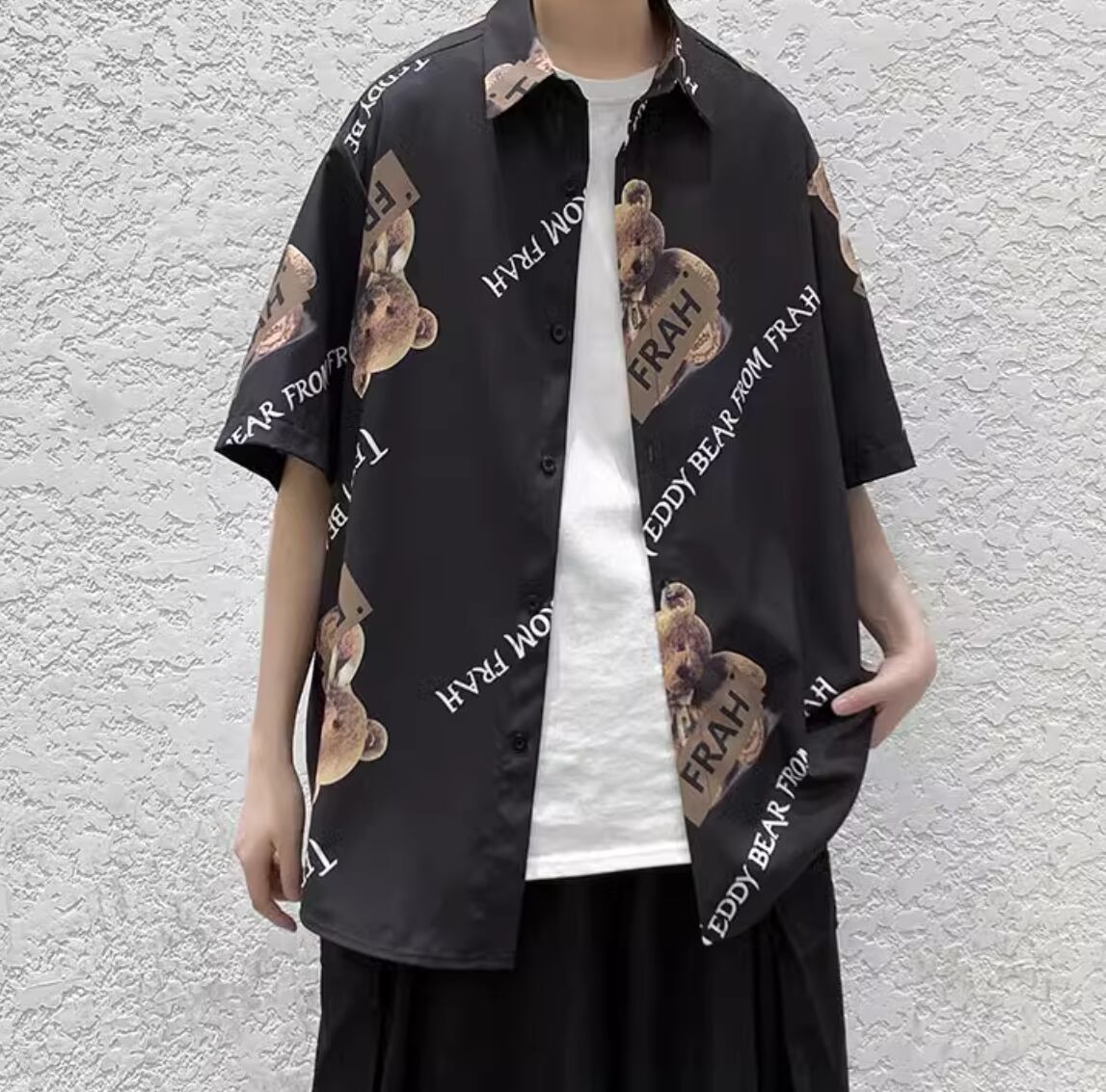 トップス シャツ レディース ブラウス 半袖 襟付き ストリート 前開き ヴィンテージ かわいい 大人可愛い きれいめ シンプル カジュアル おしゃれ かっこいい アジアン こなれ感 マニッシュ クール モード系 とろみ感 ベーシック くま柄 総柄 夏 秋 学生 学校 デート お出かけ イベント 旅行 公園 女子会 休日 ショッピング コンサート ライブ 双子 韓国 オルチャン 楽ちん トレンド 流行 インスタ映え 定番 ゆったり ゆる