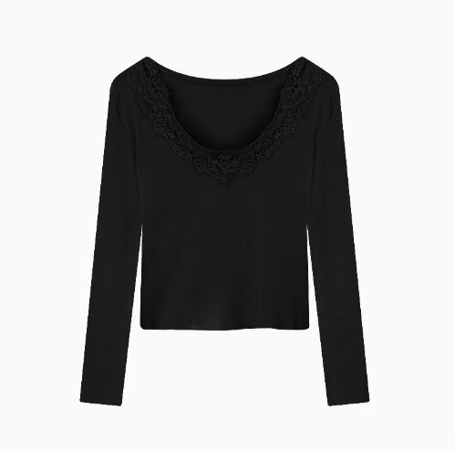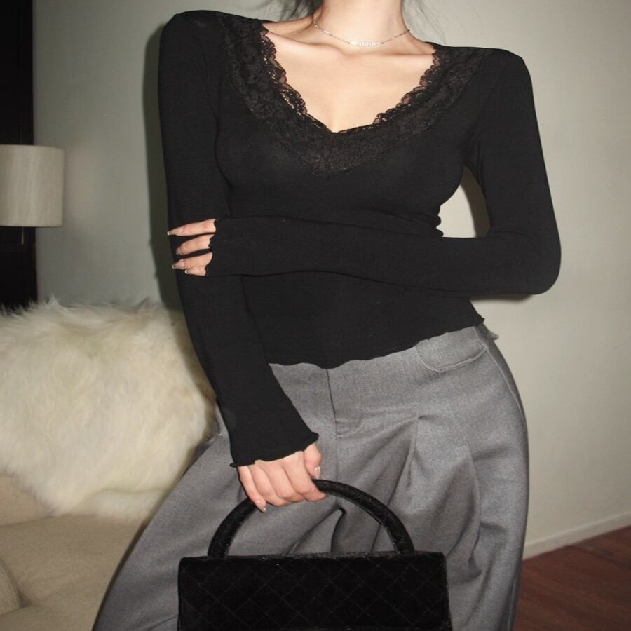 トップス カットソー タイト スリム 首元レース 長袖 Vネック レディース 襟なし 大人可愛い きれいめ シンプル カジュアル 上品 おしゃれ こなれ感 ラフ ガーリー エレガント 主役級 存在感 ラブリー キュート 都会的 ベーシック ナチュラル 無地 春 秋 10代 20代 30代 デート お出かけ 女子会 休日 ショッピング カフェ 韓国 オルチャン 普段使い 着回し モテ 清楚 トレンド 流行 インスタ映え 定番 フリーサイズ ワンサイズ ホワイト ブラック ベージュ ベーシックカラー