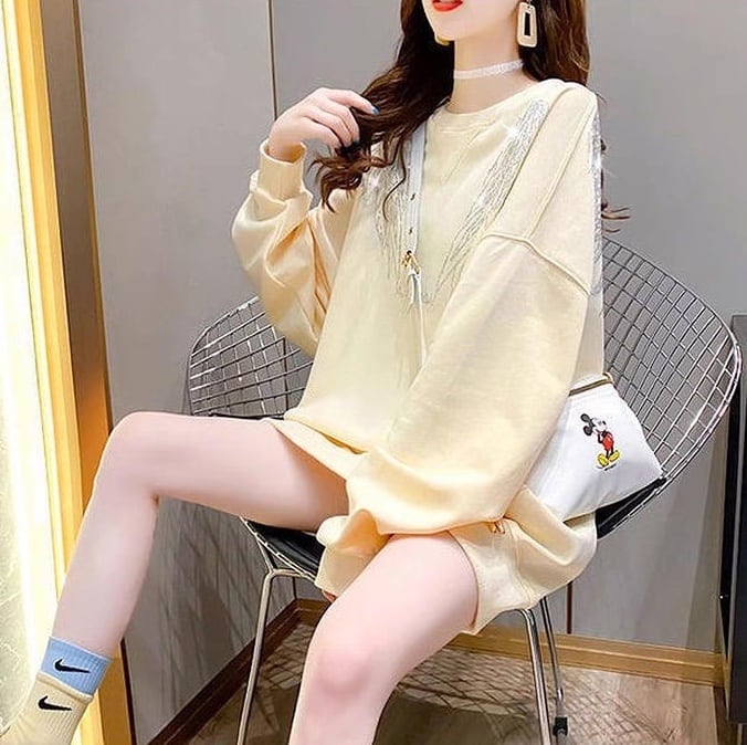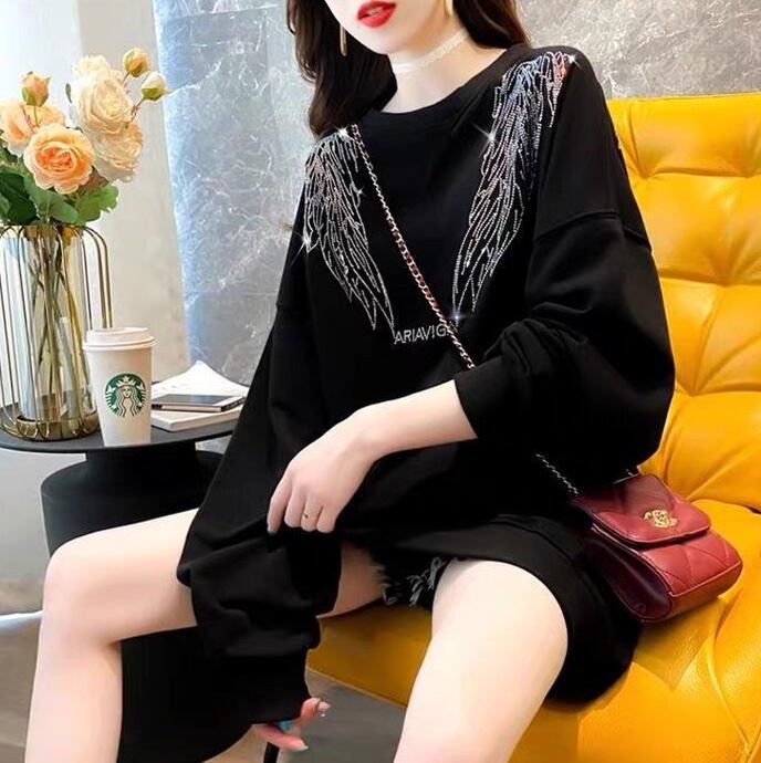 フェザーモチーフとボリューム袖で魅せる、オーバーサイズのトレーナー。