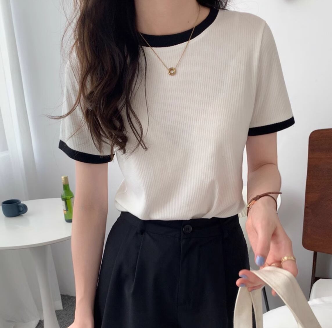 トップス カットソー レディース Tシャツ 半袖 ラウンドネック クルーネック タイト スリム 細身 フェミニン ストリート 前開き かわいい きれいめ シンプル カジュアル おしゃれ かっこいい こなれ感 ベーシック ナチュラル 無地 夏 秋 デート お泊まり イベント 旅行 女子会 休日 ショッピング コンサート ライブ 韓国 コーデ 楽ちん 体型カバー 普段使い 着回し レイヤード トレンド 流行 インスタ映え 定番 ゆったり ゆる