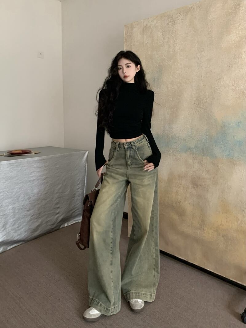 ハイネックで首元をスッキリ見せ、きれいめスタイルにも合わせやすいデザインです。