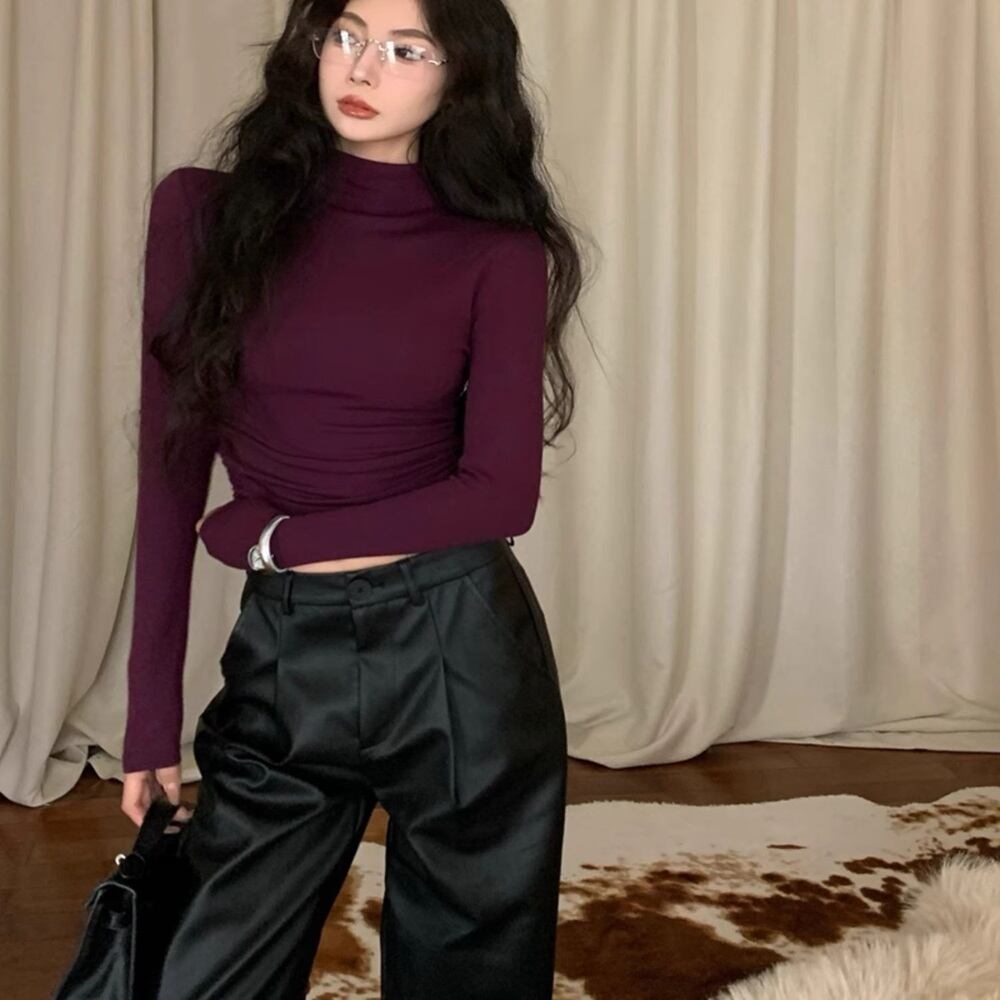 トップス カットソー 長袖 ハイネック レディース プルオーバー 襟付き タイト スリム 細身 きれいめ シンプル カジュアル おしゃれ こなれ感 ラフ スポーティー 個性的 クール モダン 主役級 存在感 都会的 ベーシック ナチュラル 無地 春 秋 20代 30代 40代 デート お出かけ 休日 ショッピング カフェ 韓国 オルチャン コーデ 楽ちん 普段使い 着回し モテ 清楚 トレンド 流行 インスタ映え 定番 S M L ブラック アプリコット ベーシックカラー 大人カラー パープル