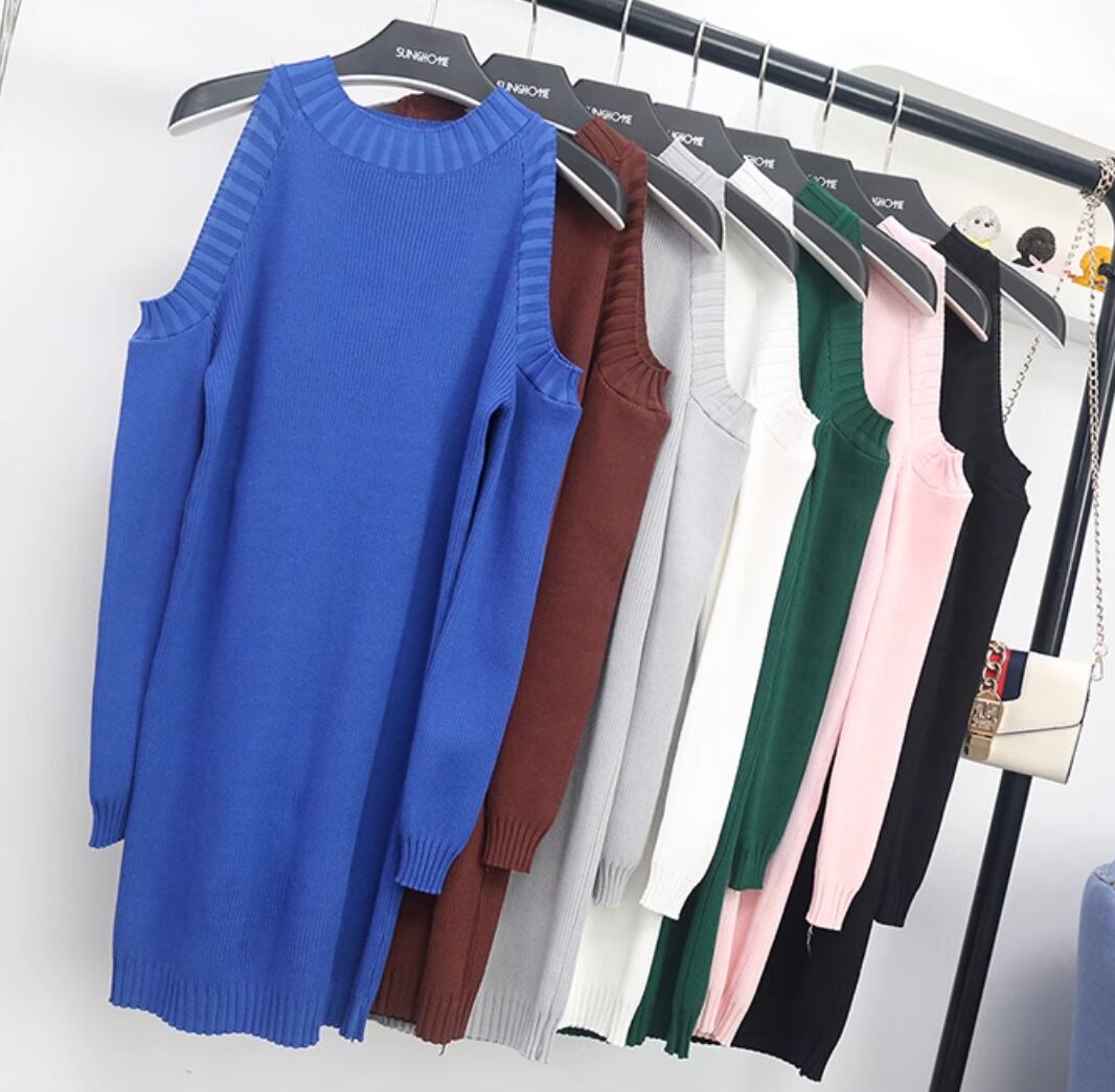 肩だしデザインが女性らしさを引き立てる、タイトなニットワンピースが登場しました!