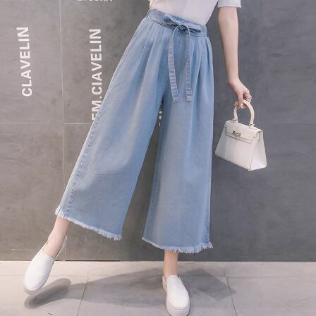 レディース パンツ ボトムス デニム ロングパンツ ワイドパンツ デニムパンツ 膝下 ロング クロップド丈 丈長 ワイド ウエストマーク ウエストリボン ポケット ハイウエスト ウエストゴム ヴィンテージ ダメージ 薄手 おしゃれ かっこいい こなれ感 アクティブ 無地 春 夏 10代 通学 お出かけ アウトドア イベント 旅行 公園 休日 コンサート ライブ お花見 楽ちん 普段使い 着回し S M L XL 2XL 3XL 4XL 5XL 小さいサイズ 大きいサイズ 水色 ブルー