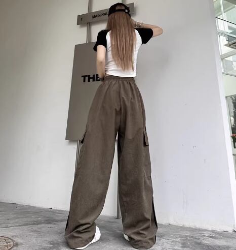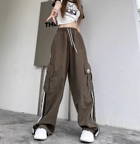 レディース パンツ ボトムス ワイドパンツ フルレングス ストレート ストリート ポケット ハイウエスト ウエストゴム アメカジ シンプル カジュアル かっこいい レトロ アジアン ラフ ボーイッシュ スポーティー ルーズ 学生風 ベーシック アメリカン アクティブ 無地 ストライプ 春 夏 秋 ロングシーズン ユニセックス 10代 20代 30代 40代 ティーン OL 学生 学校 部活 アウトドア ビーチ ジム 公園 休日 脚長 普段使い 着回し 定番 S M L XL ゆる 黒 ブラック カーキ