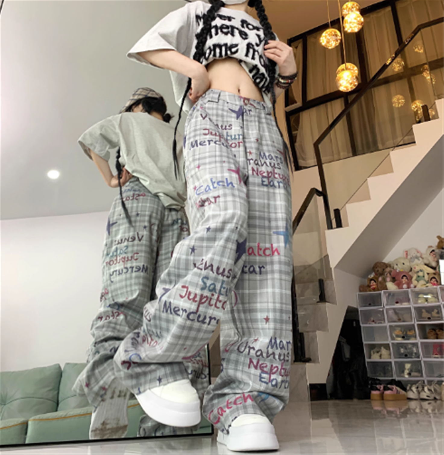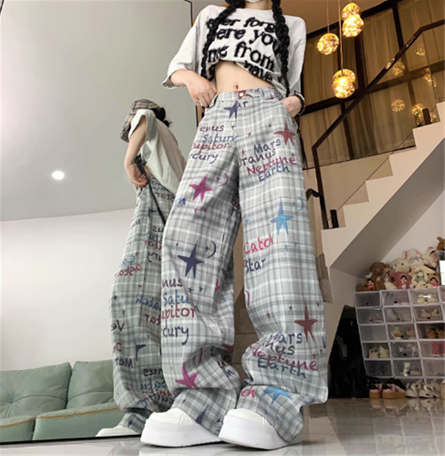 レディース パンツ ボトムス ロング ワイド カラフル 星 スター 英字 グラフィティー 落書き ペイント 大人可愛い カジュアル おしゃれ かっこいい 春 秋 10代 20代 30代 40代 ティーン お姉さん 学生 学校 通学 部活 デート お出かけ アウトドア イベント リゾート 旅行 公園 女子会 休日 カフェ 韓国 オルチャン コーデ 美脚 脚長 普段使い 着回し モテ トレンド 流行 インスタ映え 定番 S M L グレー チェック
