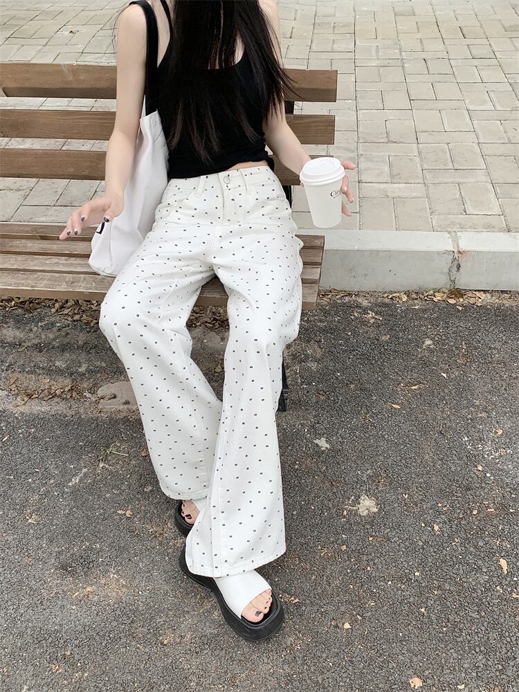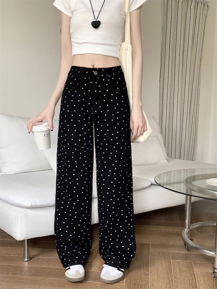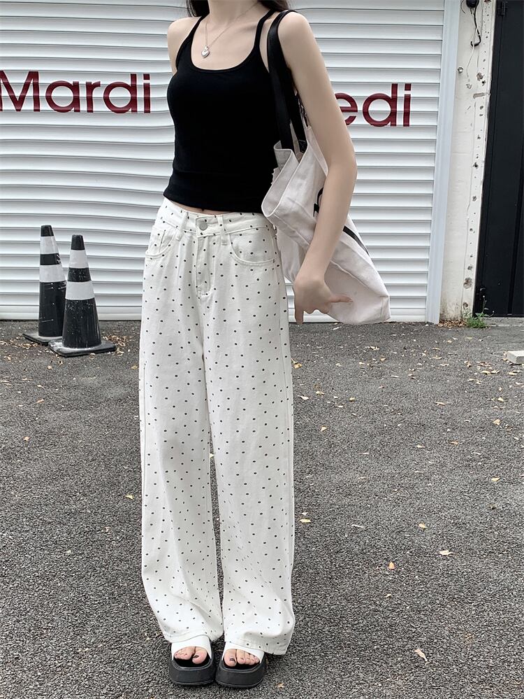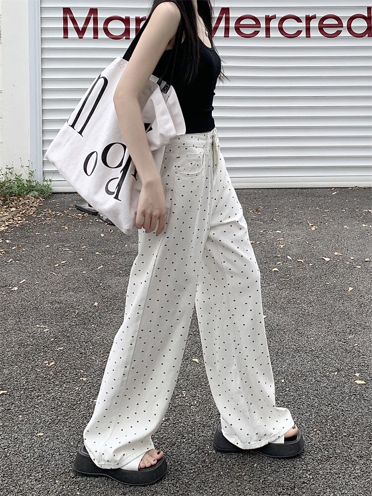 レディース パンツ ボトムス ワイドパンツ フルレングス ワイド フェミニン ストリート かわいい 大人可愛い シンプル カジュアル おしゃれ ガーリー ラブリー キュート ドット柄 オールシーズン お出かけ ショッピング 体型カバー 美脚 脚長 プチプラ 普段使い 着回し トレンド 流行 インスタ映え 定番 S M L XL 白 ホワイト 黒 ブラック ベーシックカラー 大人カラー 春カラー 秋カラー