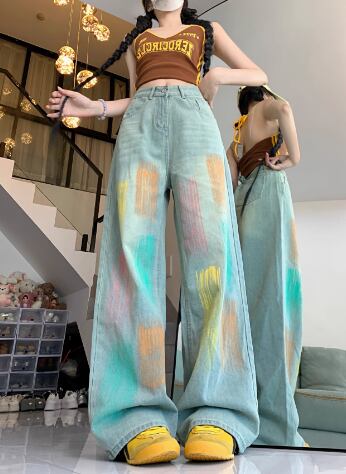 ユニークさ溢れるデニムパンツは、都会的で個性的なスタイリングを演出します。