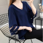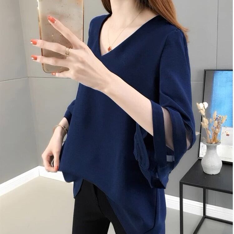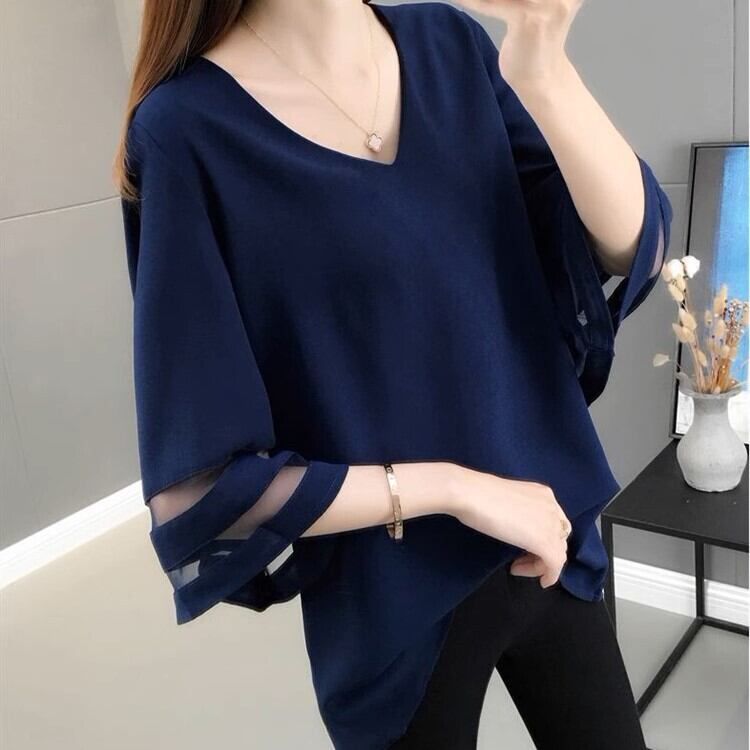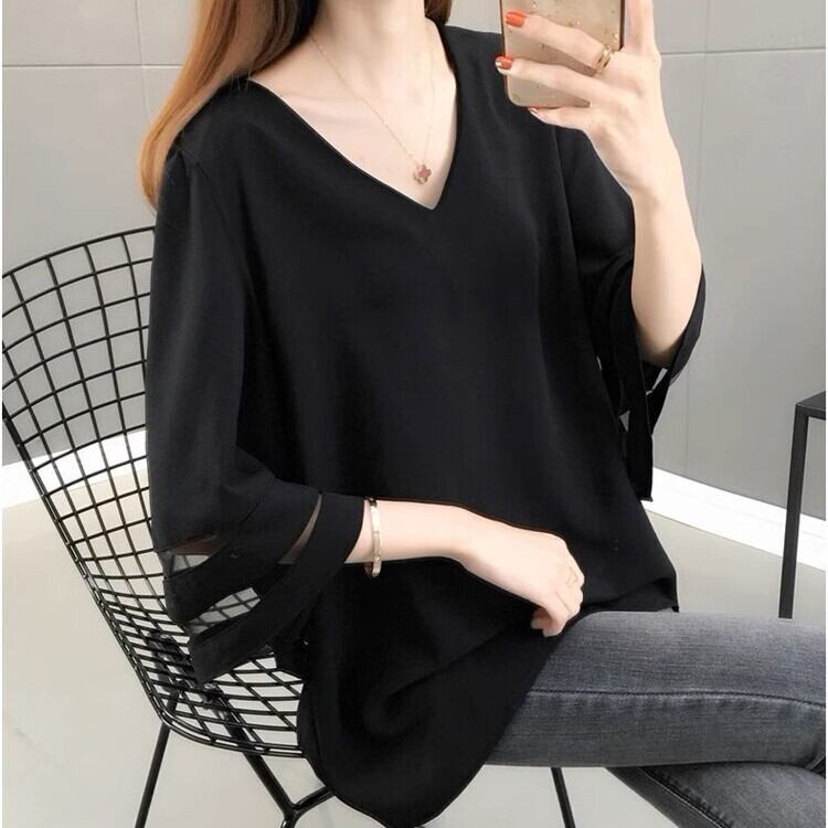 Vネックと7分袖で、女性らしさを引き立てるアイテムです。透け感があり、薄手の素材感が春夏に最適。上品でシンプルなデザインなので、オフィスや通勤、デートなど様々なシーンで活躍します。体型カバーにもなるゆったりサイズ展開で、Lから3XLまでご用意しております。