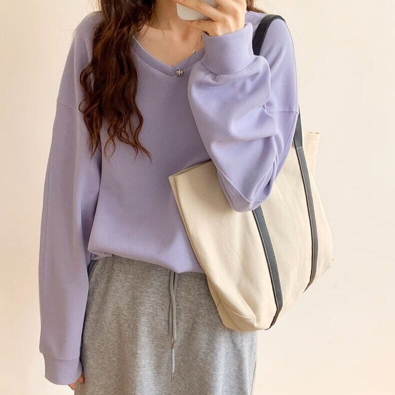 レディース トップス カットソー プルオーバー スウェット 丈長 長袖 Vネック 襟なし きれいめ シンプル カジュアル おしゃれ こなれ感 ラフ ファッショナブル 無地 春 秋 冬 オフィス OL 通勤 学生 学校 通学 部活 お泊まり リゾート 旅行 公園 休日 高原 ガーデン 重ね着 コーデ 楽ちん プレゼント 体型カバー プチプラ 普段使い 着回し 定番 S M L ゆったり ゆる 白 ホワイト 紫 グレー アプリコット ブルー 緑 グリーン パープル 青 灰色