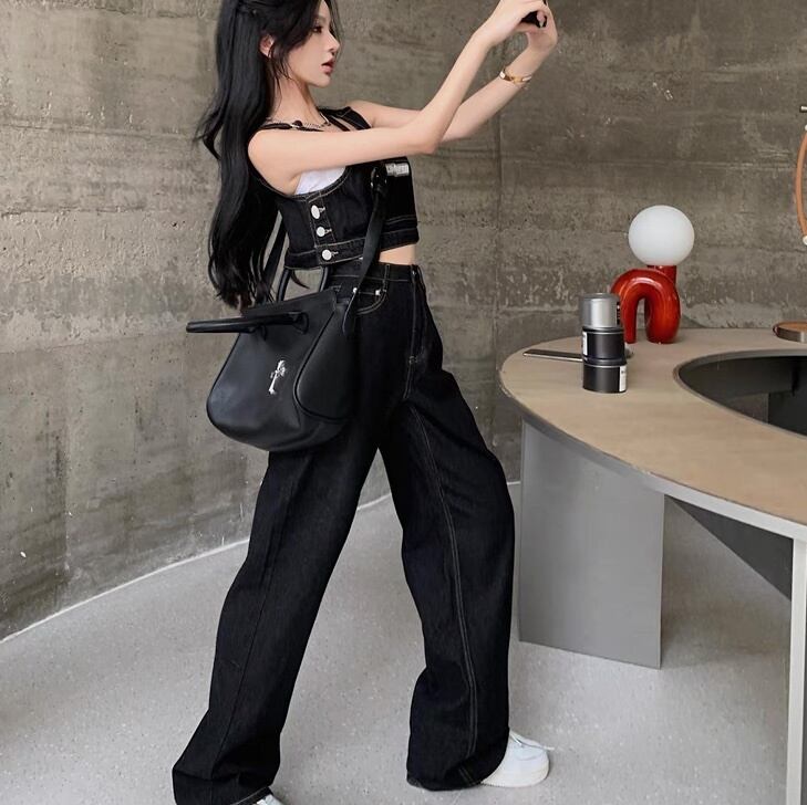 レディース トップス パンツ ボトムス キャミソール セットアップ デニム ストレートパンツ ロングパンツ デニムパンツ フルレングス 袖なし ノースリーブ スクエアネック ストレート フェミニン ストリート ポケット ハイウエスト かわいい おしゃれ こなれ感 ラフ メンズライク マニッシュ ボーイッシュ ガーリー ルーズ 個性的 抜け感 ラブリー キュート アメリカン 春 夏 パーティー イベント 旅行 休日 ライブ 普段使い 着回し レイヤード トレンド 流行 インスタ映え S M L 黒 ブラック