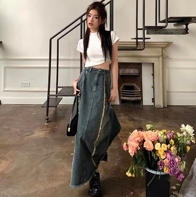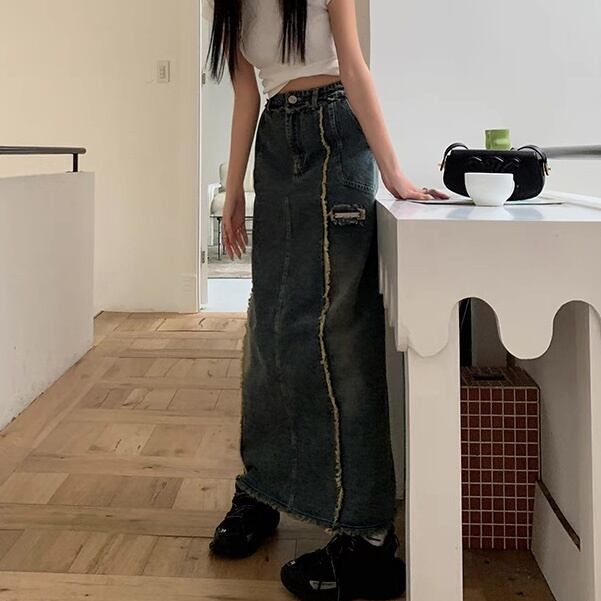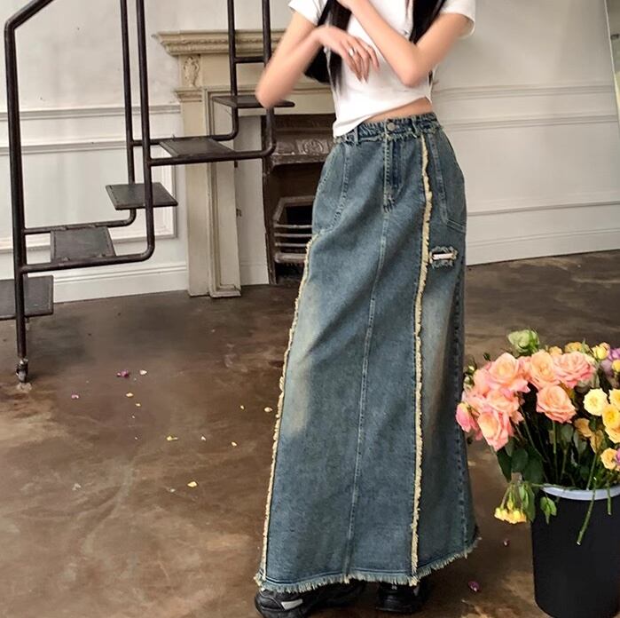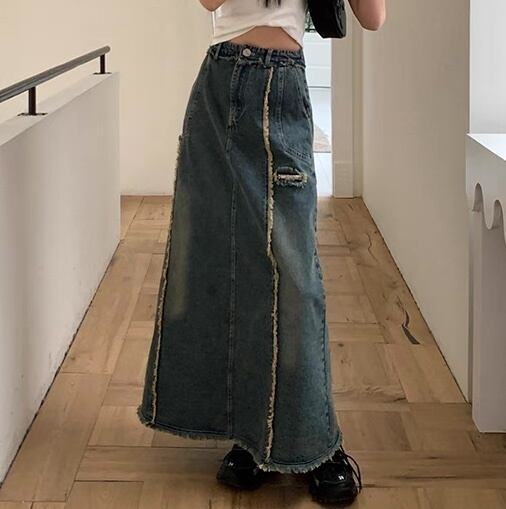 レディース スカート ボトムス デニムスカート フレアスカート ロングスカート マキシ フレア Aライン フェミニン ストリート バックスリット ハイウエスト ヴィンテージ アメカジ フリンジ シンプル カジュアル おしゃれ レトロ 抜け感 ラブリー キュート ベーシック カントリー アクティブ ナチュラル 無地 春 夏 秋 冬 オールシーズン ロングシーズン シーズンレス 女子会 休日 フェス 体型カバー 美脚 脚長 普段使い 着回し トレンド 流行 インスタ映え 定番 S M L XL ブルー くすみ