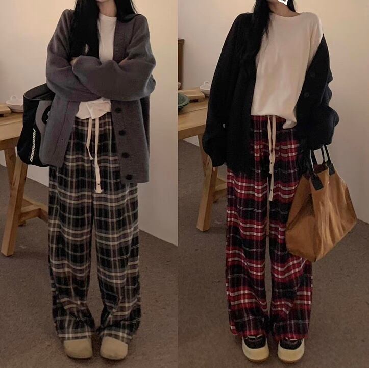 レディース パンツ ボトムス 部屋着 ストレートパンツ ロングパンツ フルレングス ハイウエスト ドロスト ヴィンテージ アメカジ かわいい 大人可愛い シンプル カジュアル おしゃれ こなれ感 メンズライク マニッシュ ガーリー ルーズ 抜け感 アクティブ ナチュラル チェック 格子柄 春 秋 10代 20代 30代 40代 ティーン お泊まり 休日 体型カバー 美脚 脚長 普段使い 着回し 定番 L XL 2XL 3XL 4XL 大きいサイズ ビッグ ゆったり ゆる 黒 ブラック グレー レッド