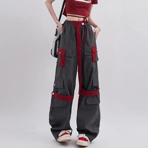 レディース パンツ ボトムス ストレートパンツ ロングパンツ ワークパンツ ワイドパンツ カーゴパンツ フルレングス ストリート ポケット ハイウエスト ドロスト バイカラー 配色 かわいい きれいめ シンプル カジュアル おしゃれ かっこいい レトロ ラフ メンズライク マニッシュ ボーイッシュ スポーティー ルーズ プレッピー カントリー アクティブ 春 秋 アウトドア イベント 休日 トレンド 流行 インスタ映え S M L 小さいサイズ 大きいサイズ ゆったり ゆる グレー レッド 大人カラー