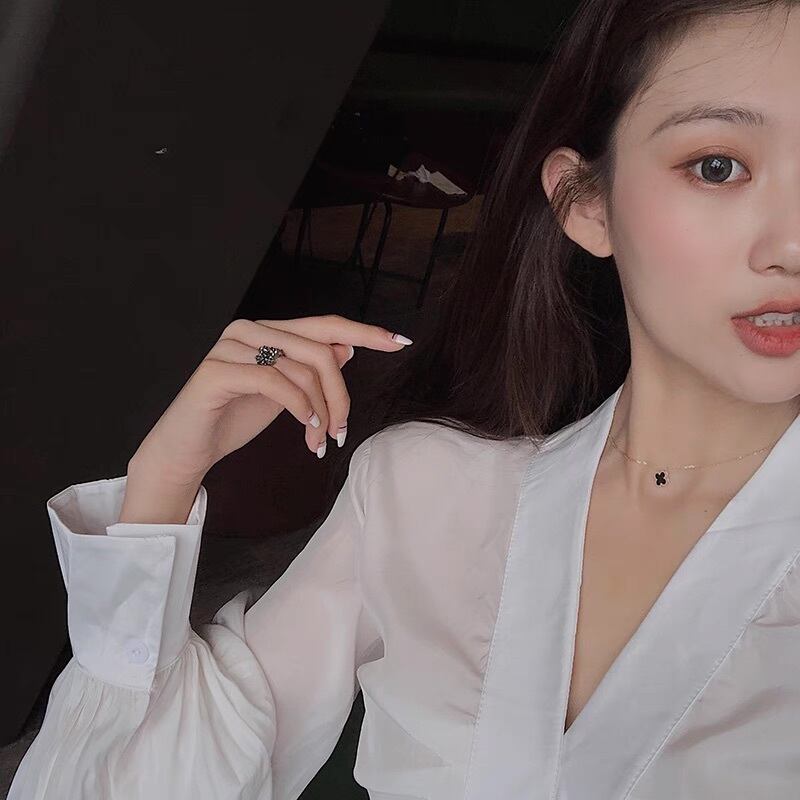 Vネック×ギャザーでデコルテ美人に。エレガントな抜け感で大人の余裕を。