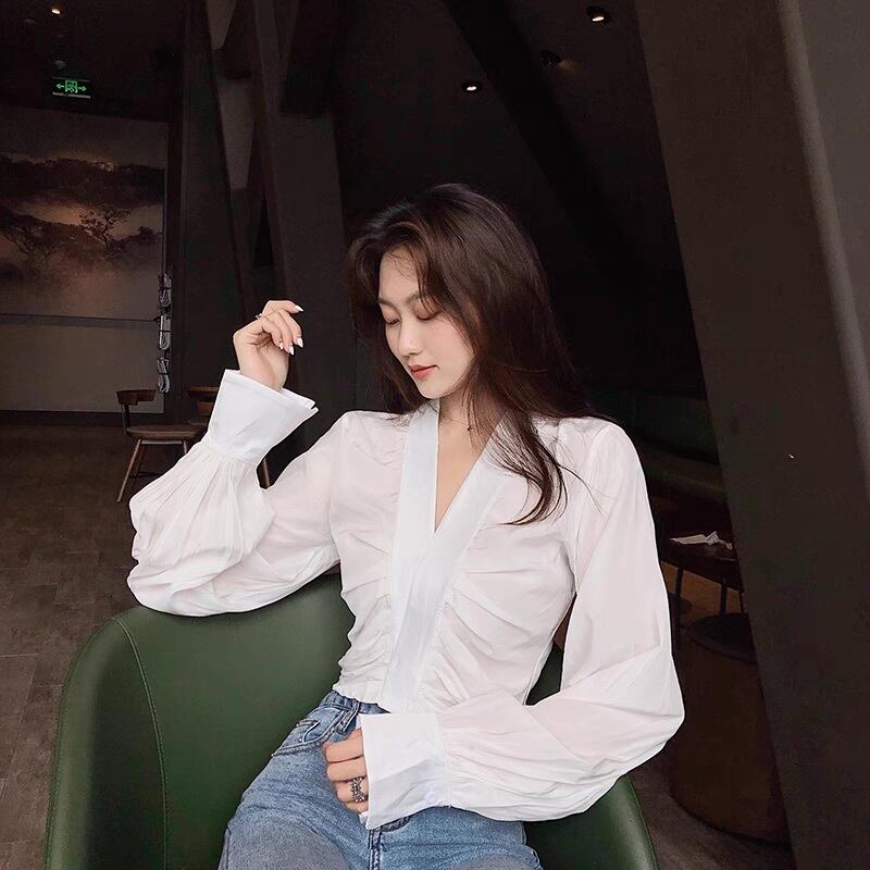 レディース トップス シャツ ブラウス ショート 長袖 ボリューム袖 バルーン袖 Vネック カシュクール フェミニン タック ハイウエスト ギャザー きれいめ シンプル おしゃれ ガーリー クール エレガント 抜け感 ラブリー キュート クラシカル ベーシック ロマンティック ナチュラル 無地 春 秋 デート お出かけ イベント 旅行 女子会 休日 ホテル ガーデン ショッピング カフェ 重ね着 普段使い 着回し レイヤード トレンド 流行 インスタ映え S M L 白 ホワイト 黒 ブラック ベージュ