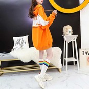レディース ワンピース ミニ 長袖 ラウンドネック フード ストリート バイカラー かわいい 大人可愛い カジュアル おしゃれ かっこいい こなれ感 ガーリー ラブリー キュート ロゴ オールシーズン お出かけ ショッピング 体型カバー プチプラ 普段使い 着回し トレンド 流行 インスタ映え 定番 M L XL 2XL 白 ホワイト 黒 ブラック オレンジ ベーシックカラー 大人カラー 春カラー 秋カラー