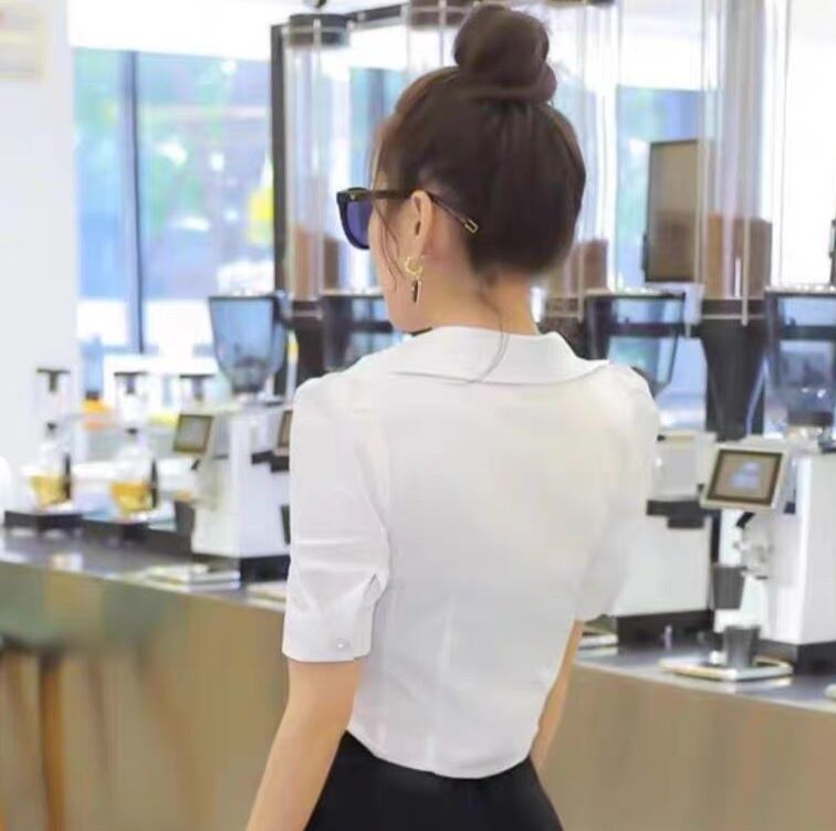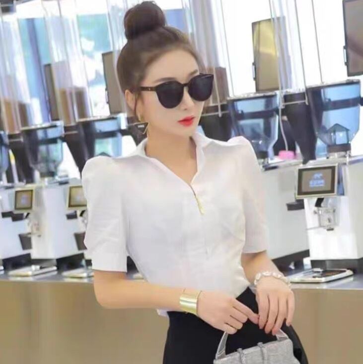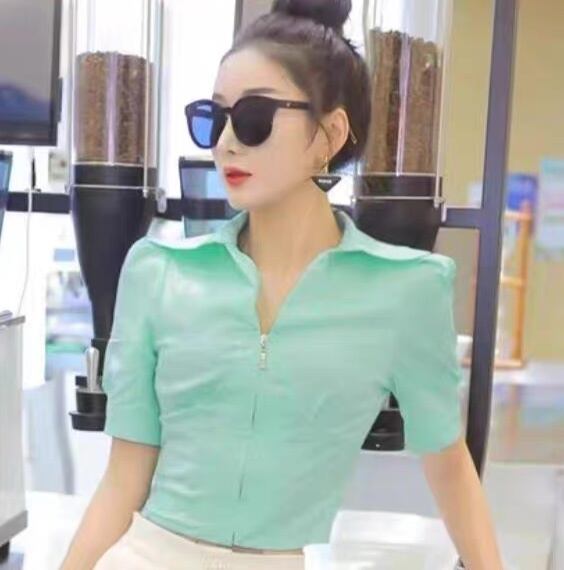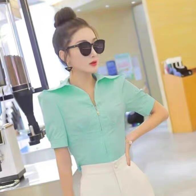 レディース トップス シャツ ブラウス プルオーバー 半袖 5分袖 ボリューム袖 パフスリーブ Vネック 襟付き 角襟 タイト スリム 細身 フェミニン ファスナー ハイウエスト コンサバ きれいめ シンプル 上品 おしゃれ かっこいい レトロ こなれ感 ラフ エレガント モダン 抜け感 キュート クラシカル ベーシック アクティブ ロマンティック ナチュラル 無地 夏 ママ お姉さん お出かけ 旅行 女子会 普段使い 着回し 定番 S M L XL 小さいサイズ 大きいサイズ 白 ホワイト 緑 グリーン