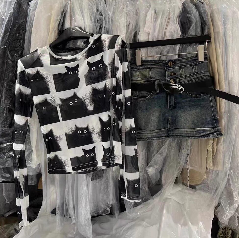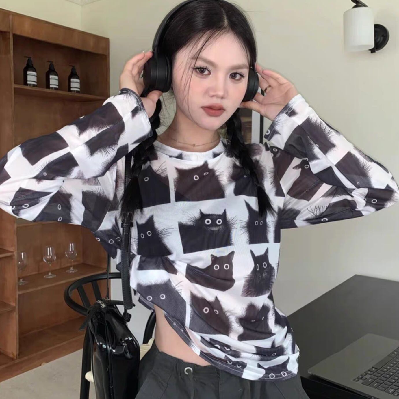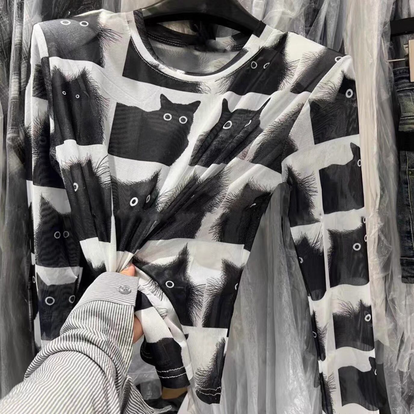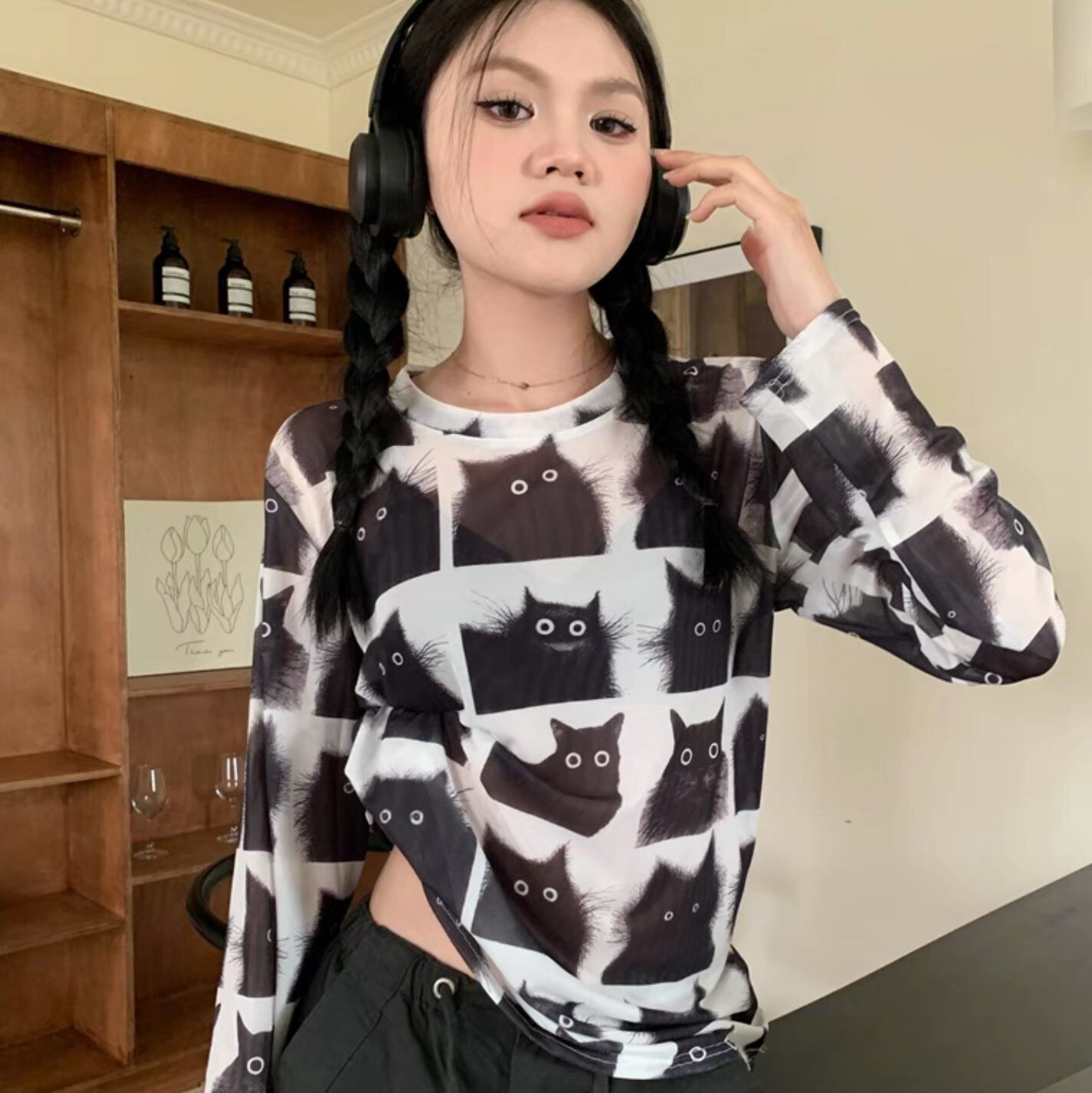 レディース トップス カットソー 長袖 Uネック 猫柄 タイト スリム 細身 フェミニン ストリート 透け感 シースルー シアー かわいい 大人可愛い シンプル カジュアル おしゃれ ガーリー 存在感 抜け感 ラブリー キュート ベーシック アクティブ ロマンティック 春 秋 10代 20代 ティーン デート お出かけ 旅行 女子会 休日 ショッピング ライブ フェス 重ね着 普段使い 着回し レイヤード トレンド 流行 インスタ映え S M L 小さいサイズ 大きいサイズ 白 ホワイト 黒 ブラック