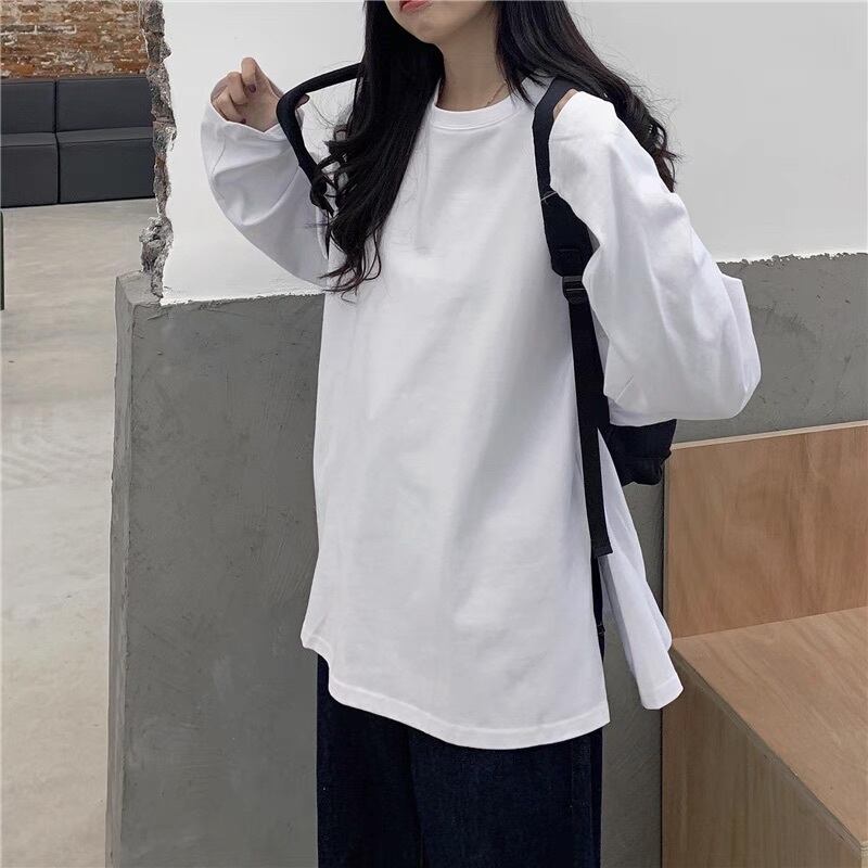 レディース トップス カットソー 長袖 ラウンドネック オーバーサイズ ストリート サイドスリット アメカジ きれいめ シンプル カジュアル おしゃれ かっこいい ラフ メンズライク マニッシュ ボーイッシュ ルーズ ベーシック アメリカン プレッピー アクティブ ナチュラル 無地 春 秋 男女兼用 ユニセックス ママ 10代 20代 30代 40代 お出かけ 休日 モノトーン 重ね着 普段使い 着回し レイヤード 定番 M L XL 大きいサイズ ビッグ ゆったり ゆる 白 ホワイト 黒 ブラック