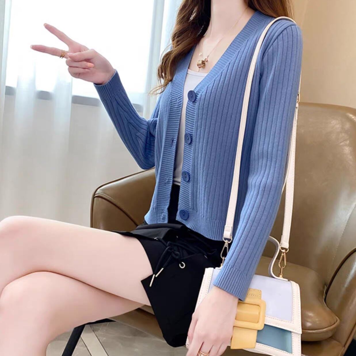 リブニットカーディガンで叶える、シンプルながらも上品なスタイル。