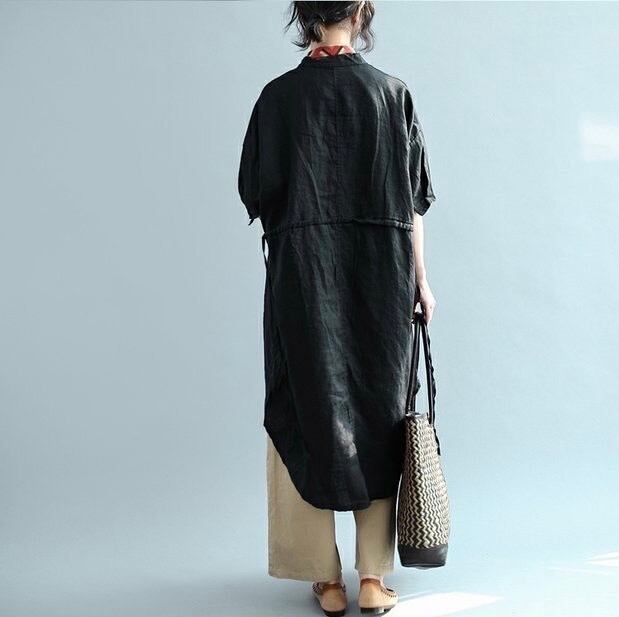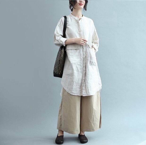 トップス シャツ レディース ブラウス シャツワンピ 膝丈 長袖 ノーカラー フレア フェミニン 前開き リネン かわいい 大人可愛い シンプル カジュアル 上品 ガーリー 個性的 主役級 ラブリー キュート 無地 春 秋 オフィス ビジネス デート お出かけ パーティー イベント 旅行 公園 女子会 休日 ショッピング コンサート ライブ 双子 韓国 コーデ 楽ちん 着回し モテ 清楚 トレンド 流行 インスタ映え 定番 ゆる