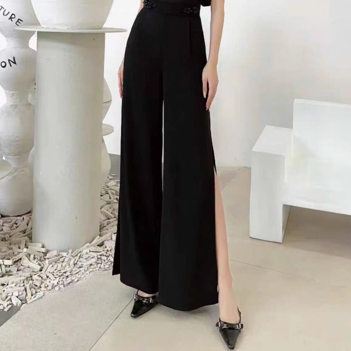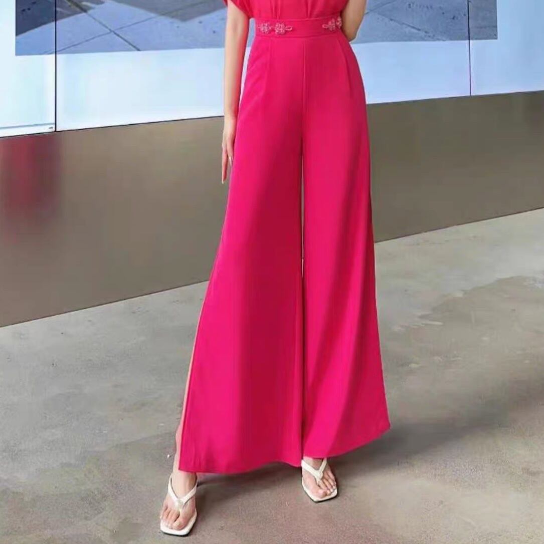 レディース パンツ ボトムス ロングパンツ ワイドパンツ フルレングス ブーツカット フェミニン 刺繍 サイドスリット ハイウエスト おしゃれ かっこいい レトロ アジアン エスニック エキゾチック クール モード系 エレガント モダン 主役級 存在感 抜け感 ヴィンテージ ラブリー ラグジュアリー クラシカル 無地 春 夏 秋 お出かけ パーティー イベント レストラン 休日 ホテル 美脚 脚長 トレンド 流行 インスタ映え S M L XL 2XL 小さいサイズ 大きいサイズ 黒 ブラック ピンク
