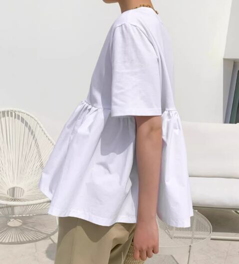 レディース トップス Tシャツ フレア 半袖 ラウンドネック 大人可愛い きれいめ シンプル カジュアル 上品 おしゃれ 主役級 存在感 無地 春 夏 ママ マタニティ 10代 20代 30代 40代 ティーン お姉さん 学生 学校 通学 部活 デート お出かけ アウトドア 旅行 公園 女子会 休日 カフェ フェス お揃い 双子 韓国 オルチャン コーデ 体型カバー 普段使い 着回し モテ トレンド インスタ映え 定番 S M L XL 白 ホワイト 黒 ブラック