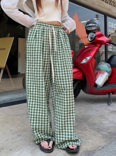 カジュアル ワイドパンツ レディース パンツ ボトムス ロング ワイド フレア 裾ワイド フェミニン ウエストゴム 大人可愛い シンプル 上品 おしゃれ こなれ感 ラフ ルーズ 個性的 主役級 存在感 抜け感 都会的 ベーシック ナチュラル チェック 格子柄 春 夏 10代 20代 30代 デート お出かけ 旅行 女子会 休日 ショッピング カフェ コーデ 楽ちん 体型カバー 美脚 脚長 普段使い 着回し モテ トレンド 流行 インスタ映え 定番 S M L XL 2XL ゆったり グリーン