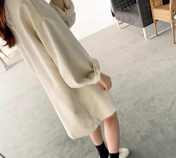 レディース スカート トップス ワンピース 前開き 膝丈 ミモレ 7分袖 パフスリーブ ラウンドネック 襟なし ストレート Iライン スマート ボタン かわいい 大人可愛い カジュアル おしゃれ レトロ ラフ ガーリー ルーズ 抜け感 ナチュラル 無地 春 秋 冬 10代 20代 30代 40代 ティーン お姉さん オフィスカジュアル オフィス OL 通勤 学生 通学 デート お出かけ 体型カバー プチプラ モテ ゆったり ゆる フリーサイズ 白 ホワイト オフホワイト 大人カラー 秋カラー アイボリー