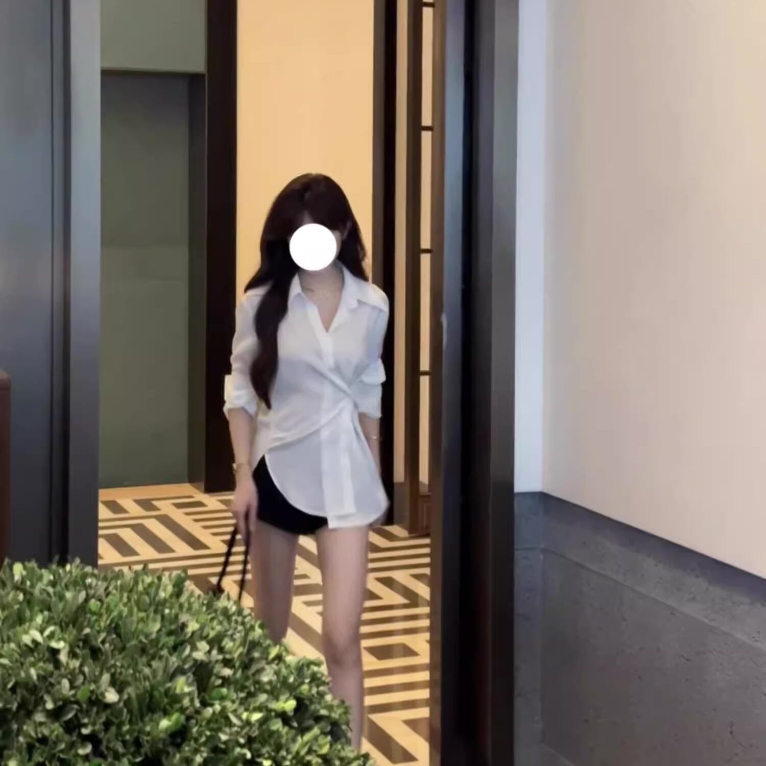 ボタンのかける位置が特徴的なシンプルなシャツトップスです。