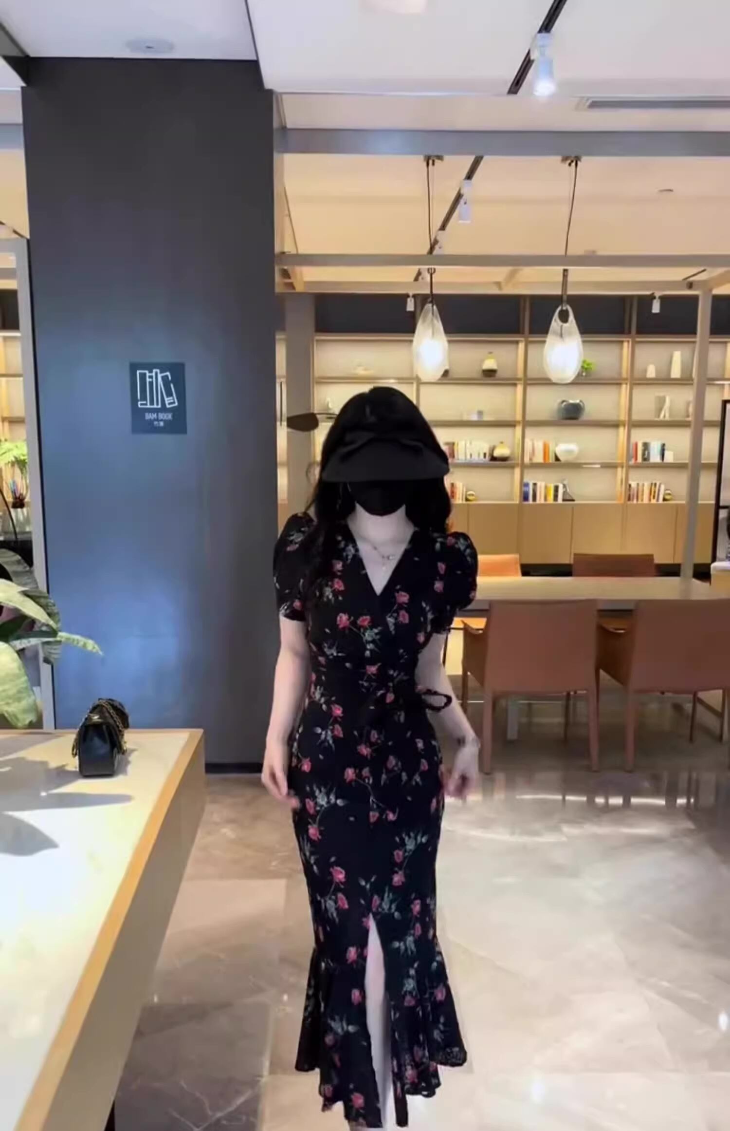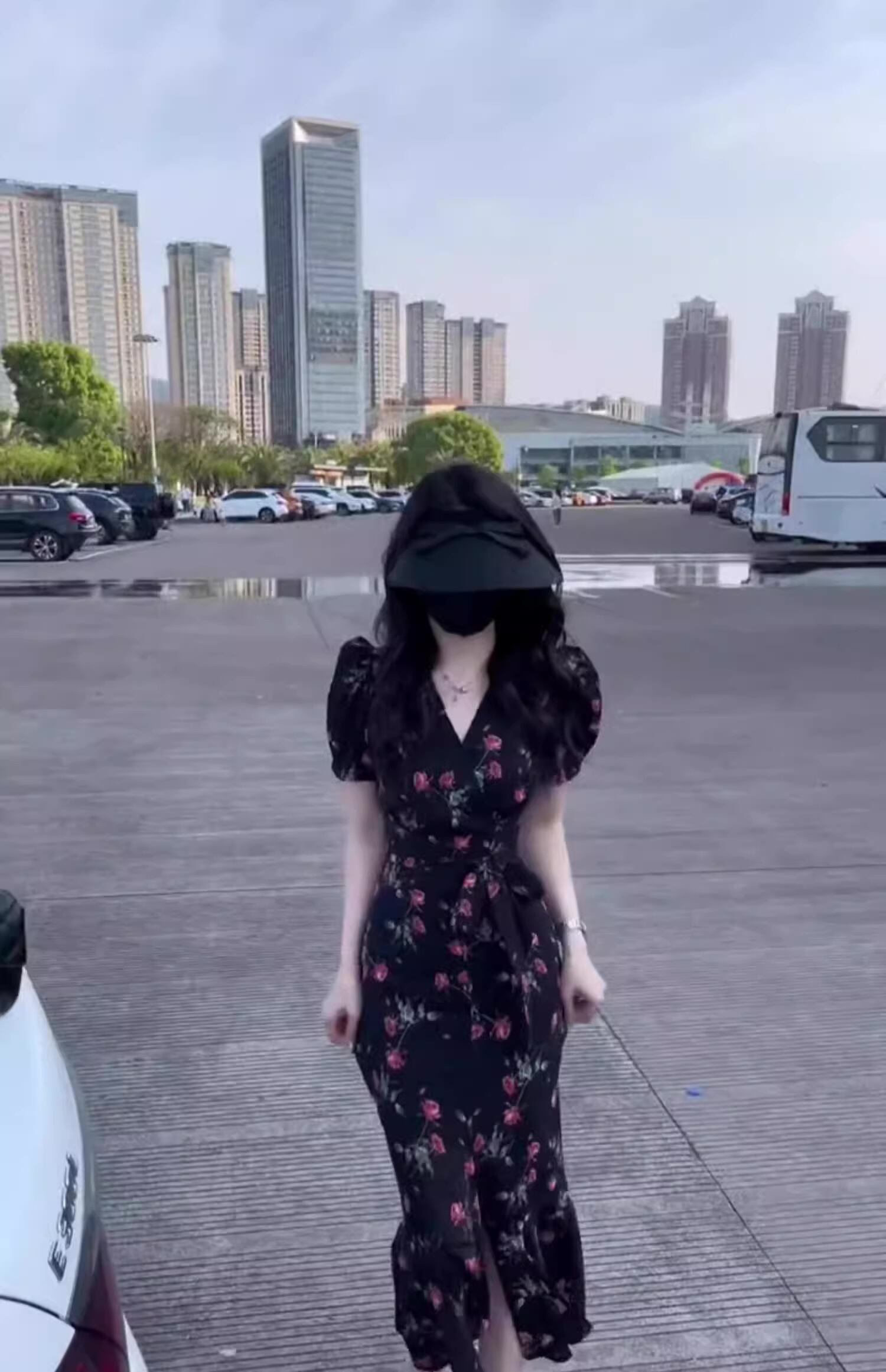 マーメイドラインが美しい、花柄の半袖ワンピースです。