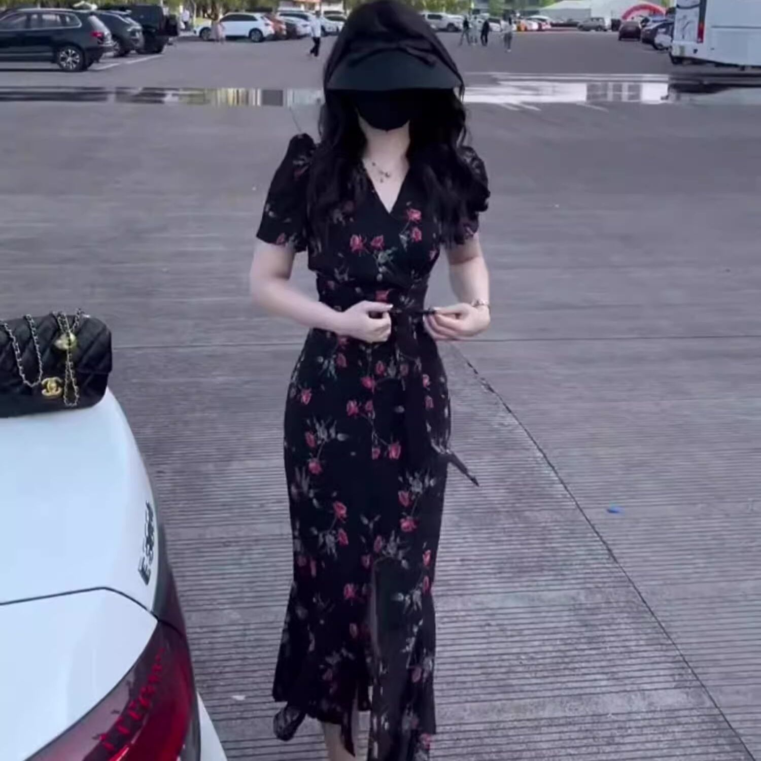 レディース スカート ワンピース シャツワンピ 膝下 ミモレ 半袖 Vネック 襟なし タイト スリム 細身 マーメイド リボン ウエストマーク ウエストリボン スリット ハイウエスト 薄手 かわいい 大人可愛い きれいめ 上品 おしゃれ レトロ エキゾチック 個性的 エレガント モダン ラグジュアリー クラシカル ロマンティック 花柄 フラワー 夏 デート お出かけ パーティー イベント リゾート 旅行 レストラン 女子会 休日 ガーデン ショッピング 美脚 脚長 普段使い 黒 ブラック