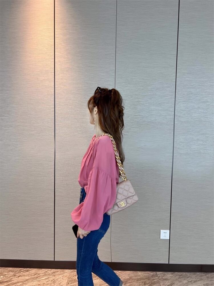 ふんわりとしたボリュームのある袖が特徴的なブラウスです。