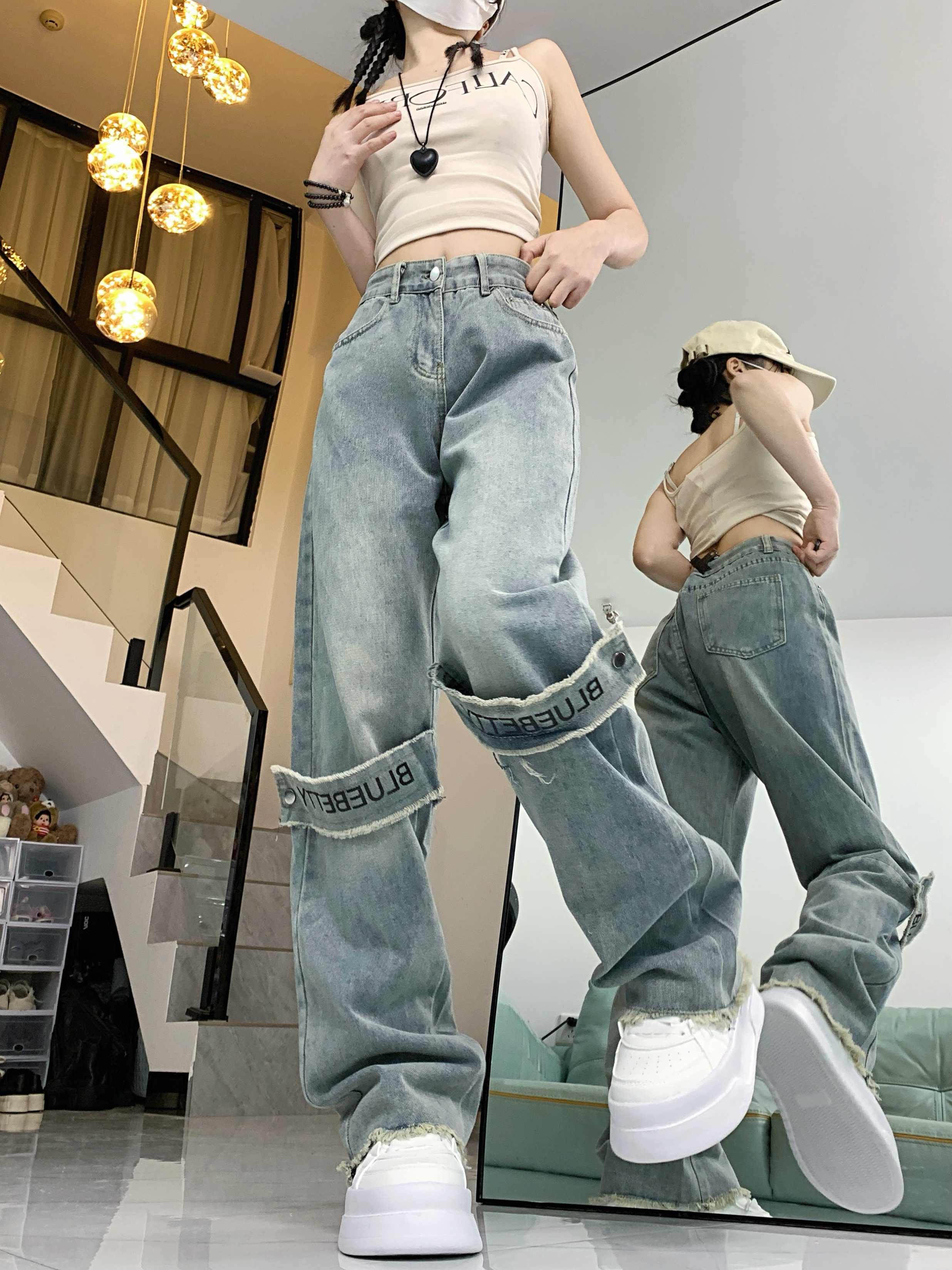 レディース パンツ デニム Gパン フルレングス ワイド ストリート ウォッシュ かわいい 大人可愛い カジュアル おしゃれ かっこいい ボーイッシュ ラブリー キュート アメリカン 無地 ロゴ オールシーズン お出かけ ショッピング コーデ 体型カバー 美脚 脚長 普段使い 着回し トレンド 流行 インスタ映え 定番 S M L XL ブルー ベーシックカラー 大人カラー 春カラー 秋カラー
