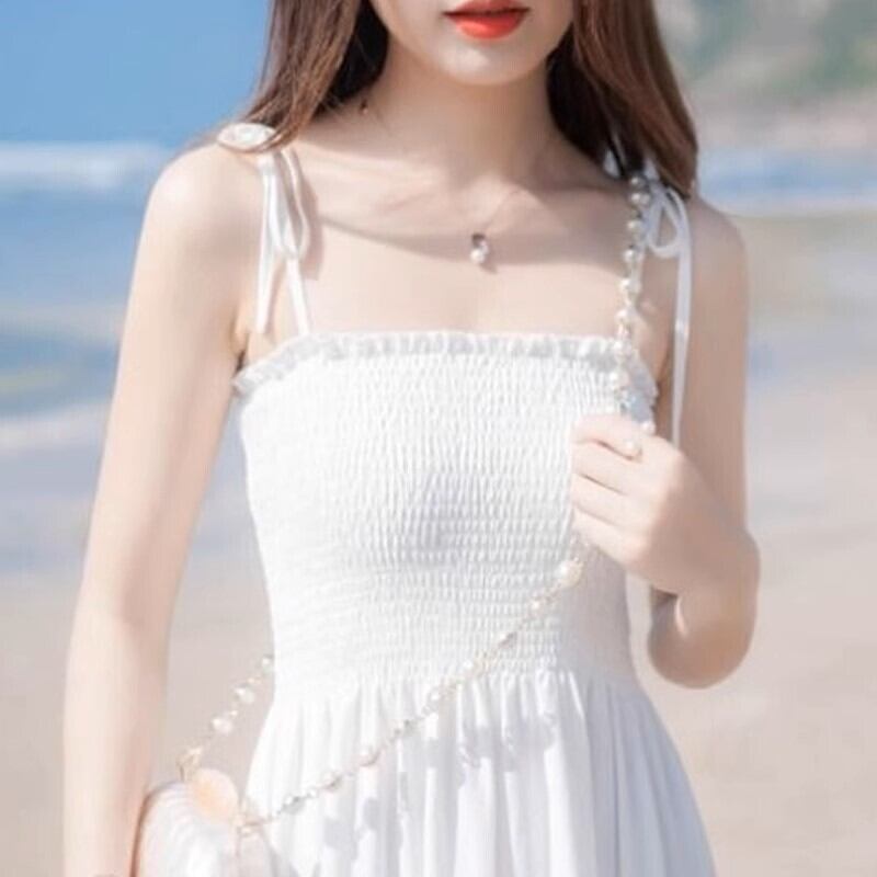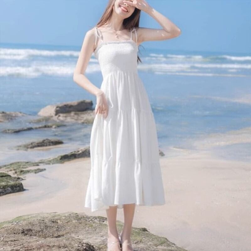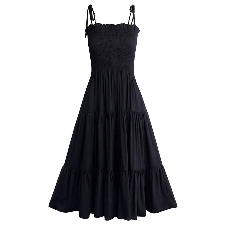 レディース ワンピース ドレス ギャザースカート 膝下 ロング 丈長 袖なし ノースリーブ 襟なし 裾ワイド フリル ウエストゴム サスペンダー 薄手 かわいい 大人可愛い きれいめ 上品 おしゃれ ガーリー 主役級 ラブリー キュート ロマンティック ファッショナブル 無地 春 夏 デート お出かけ お泊まり パーティー リゾート 旅行 海 プール ビーチ 公園 休日 バカンス 高原 ガーデン コーデ 着回し モテ 清楚 S M L XL 白 ホワイト 黒 ブラック