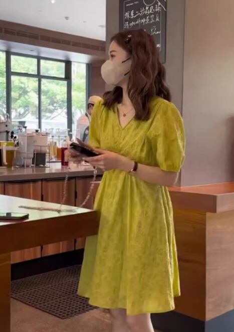 レディース スカート ワンピース ドレス フレア ショート 膝上 半袖 5分袖 パフスリーブ Vネック Aライン フェミニン プリーツ ハイウエスト 透け感 シースルー ギャザー シャーリング かわいい 大人可愛い おしゃれ ガーリー キュート ロマンティック ナチュラル 無地 春 夏 秋 10代 20代 30代 ティーン お姉さん お嬢さん OL 学生 デート お出かけ イベント 体型カバー 美脚 S M L XL オフホワイト くすみ アプリコット 緑 グリーン モスグリーン 大人カラー 秋カラー