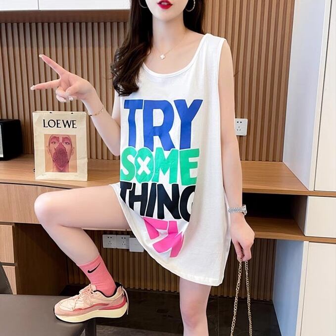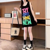レディース トップス ワンピース タンクトップ ショート 膝上 袖なし ノースリーブ ラウンドネック フレア オーバーサイズ ストリート アメカジ カジュアル おしゃれ かっこいい キュート アメリカン プレッピー アクティブ ナチュラル ファッショナブル プリント 夏 リゾート 旅行 海 休日 バカンス コンサート ライブ フェス 重ね着 楽ちん 普段使い 着回し レイヤード トレンド 流行 インスタ映え M L XL 2XL 小さいサイズ 大きいサイズ ゆったり ゆる 白 ホワイト 黒 ブラック