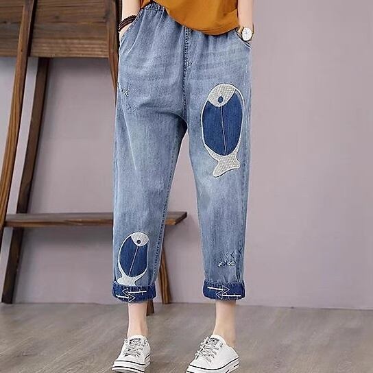 お魚パッチワークで遊び心たっぷりのヴィンテージ風デニム。