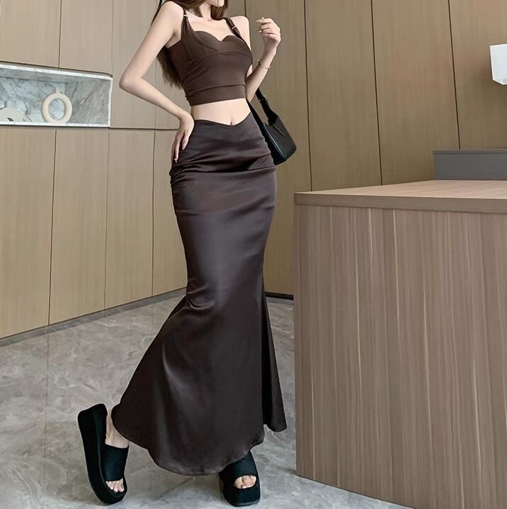 レディース スカート ボトムス タイトスカート マーメイドスカート ロングスカート ロング マキシ タイト スリム 細身 マーメイド フェミニン ハイウエスト ヴィンテージ おしゃれ こなれ感 ガーリー クール モード系 エレガント モダン 主役級 存在感 抜け感 ファッショナブル セクシー 無地 春 夏 お出かけ イベント 女子会 休日 コンサート ライブ カフェ フェス 着回し 流行 インスタ映え 定番 S M L XL 黒 ブラック 茶色 ブラウン 光沢 メタリック ベーシックカラー 大人カラー