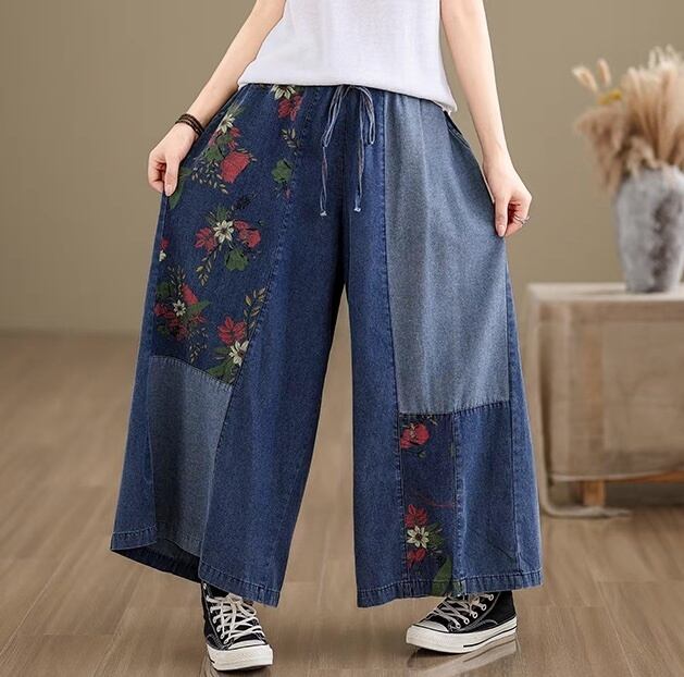 レディース パンツ ボトムス Gパン ストレートパンツ ロングパンツ デニムパンツ アンクル丈 アシンメトリー 切り替え ドッキング フェミニン ストリート ハイウエスト ドロスト ブルーデニム かわいい 大人可愛い レトロ こなれ感 個性的 ヴィンテージ ラブリー キュート ベーシック アメリカン プレッピー カントリー アクティブ ナチュラル ファッショナブル 花柄 フラワー 春 夏 秋 ライブ カフェ フェス M L XL 2XL 小さいサイズ 大きいサイズ ビッグ ゆったり ゆる 水色 ブルー