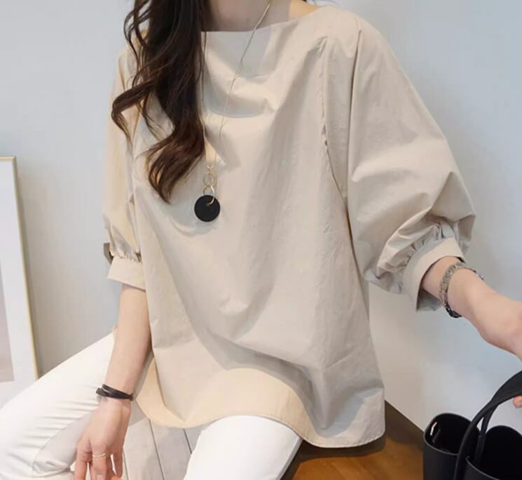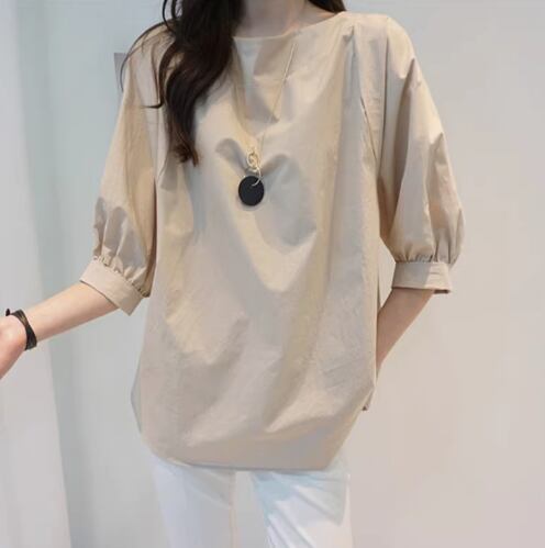 シャツ ブラウス レディース トップス プルオーバー 7分袖 パフスリーブ ラウンドネック 襟なし ワイド フレア フェミニン きれいめ シンプル カジュアル 上品 おしゃれ こなれ感 ラフ クール モード系 エレガント モダン 主役級 存在感 ベーシック ナチュラル 無地 春 夏 20代 30代 40代 デート お出かけ 女子会 休日 ショッピング カフェ コーデ 楽ちん 普段使い 着回し モテ 清楚 トレンド 流行 インスタ映え 定番 S M L XL ゆったり ホワイト ベージュ ベーシックカラー